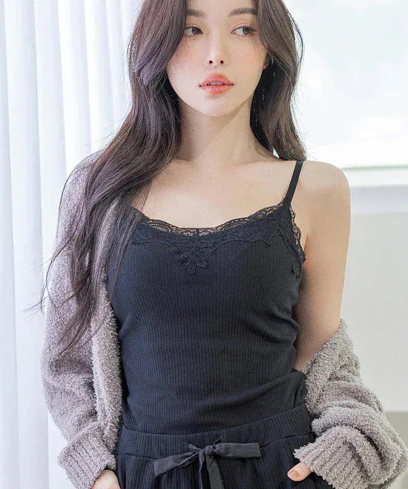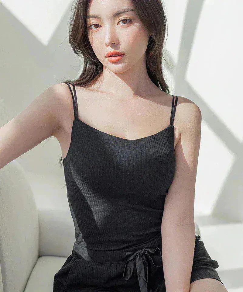 リピートです!リブでおしゃれで、いやらしくない感じに使えます!肩紐二本なところも好きです!