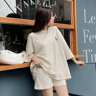 HOTPINGDINOSAUR刺しゅうTシャツ&ショートパンツSET