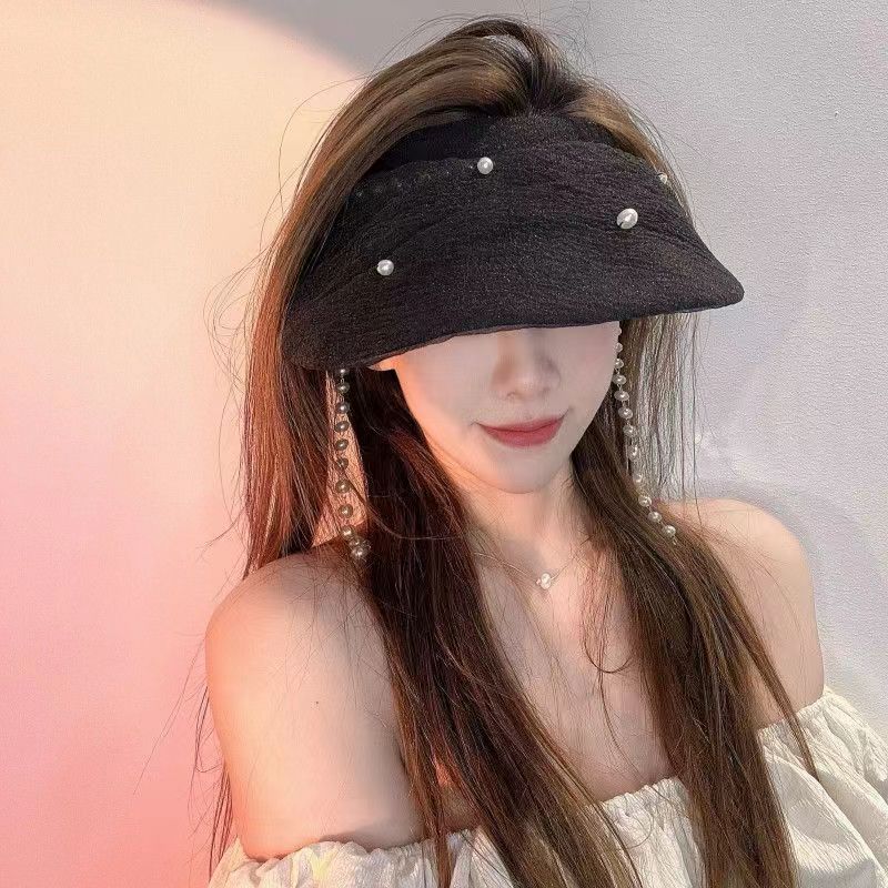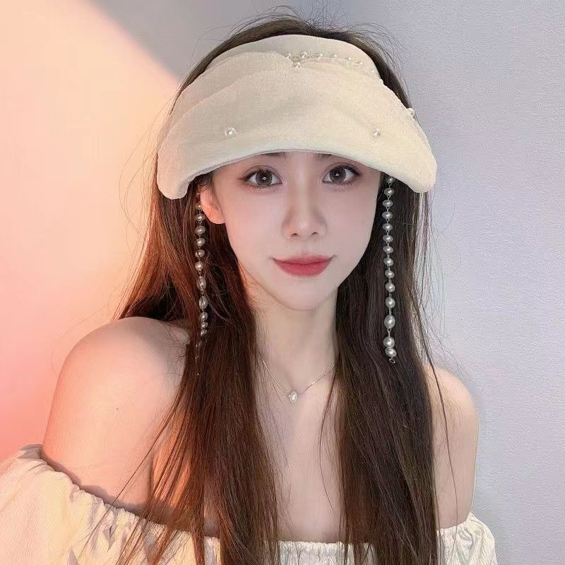 真珠チェーン空頂日焼け止め帽の新しいネット糸カチューシャ日よけ帽子韓国ファッション