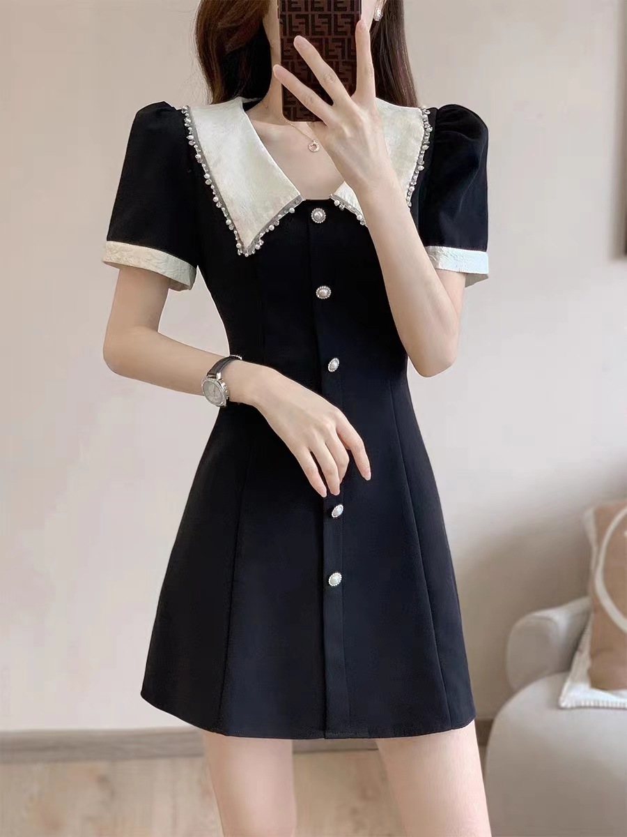 黒いワンピースpoloネック 韓国ファッション