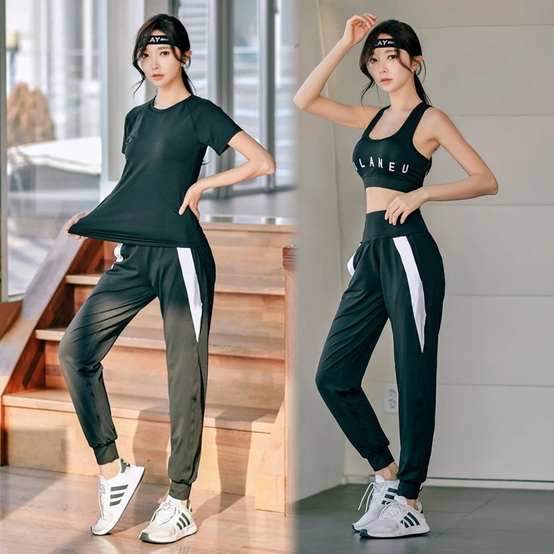 5 5lit*** 2026.03.14 Color:黒3点セット(トップス、パンツ、スポーツブラ) Size:Mオプション : Color:黒3点セット(トップス、パンツ、スポーツブラ) / Size:M