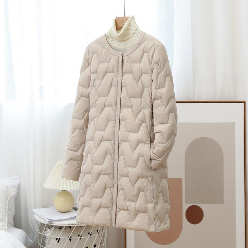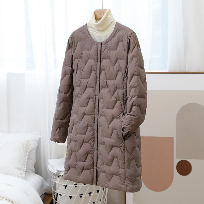 羽毛ジャケット女性中丈2021新型丸首ファッションコートに軽便な菱形の格子を掛けて内側のきもの外套を