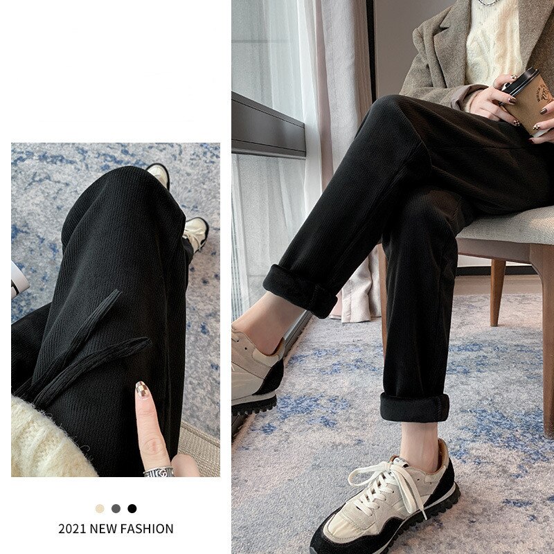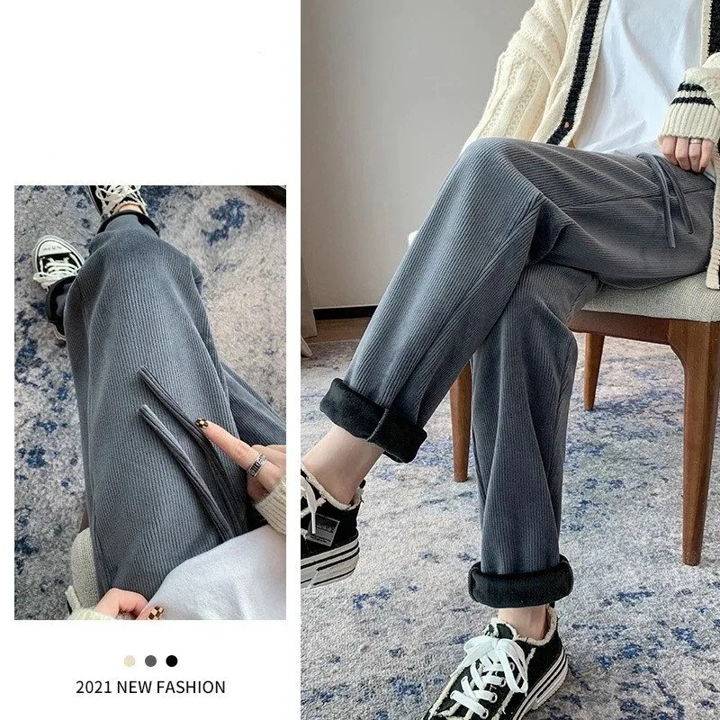 かっこいい!スラックスパンツコーデュロイパンツ スラックスパンツわた入りスウェットパンツ 冬カジュアルパンツ 暖かいハーレムパンツ ボトムス