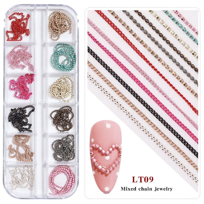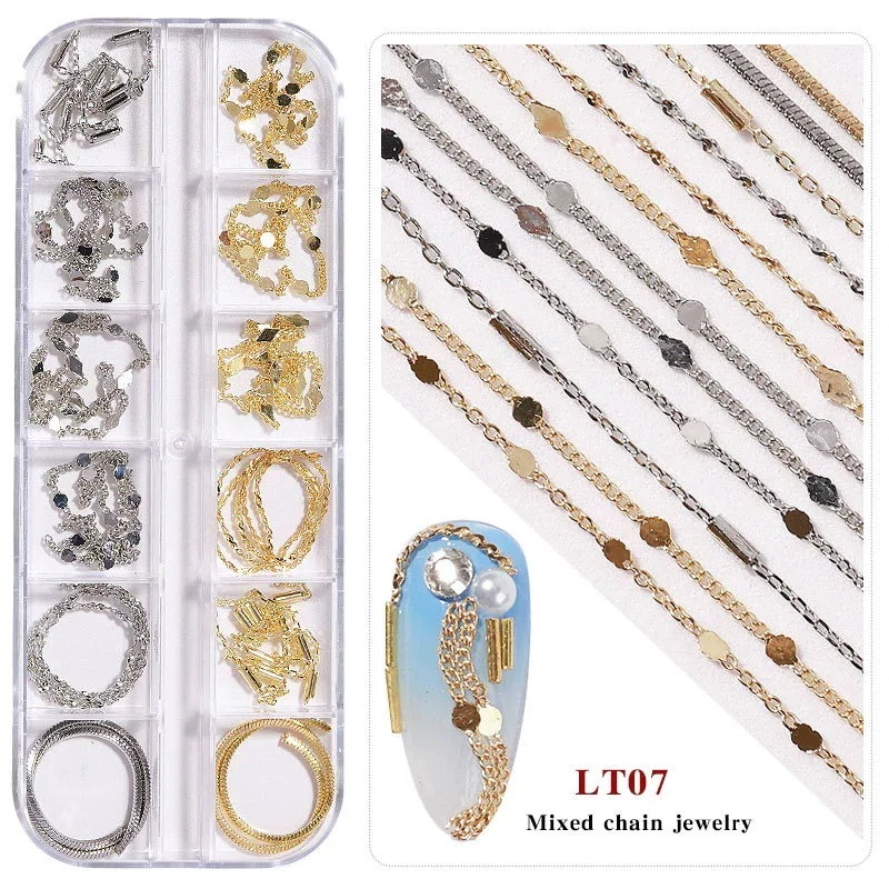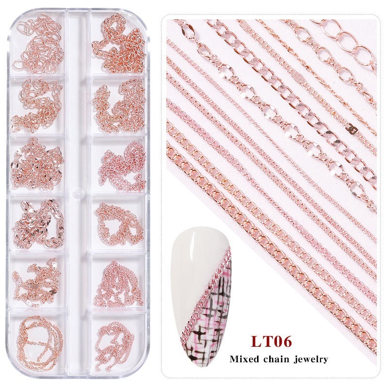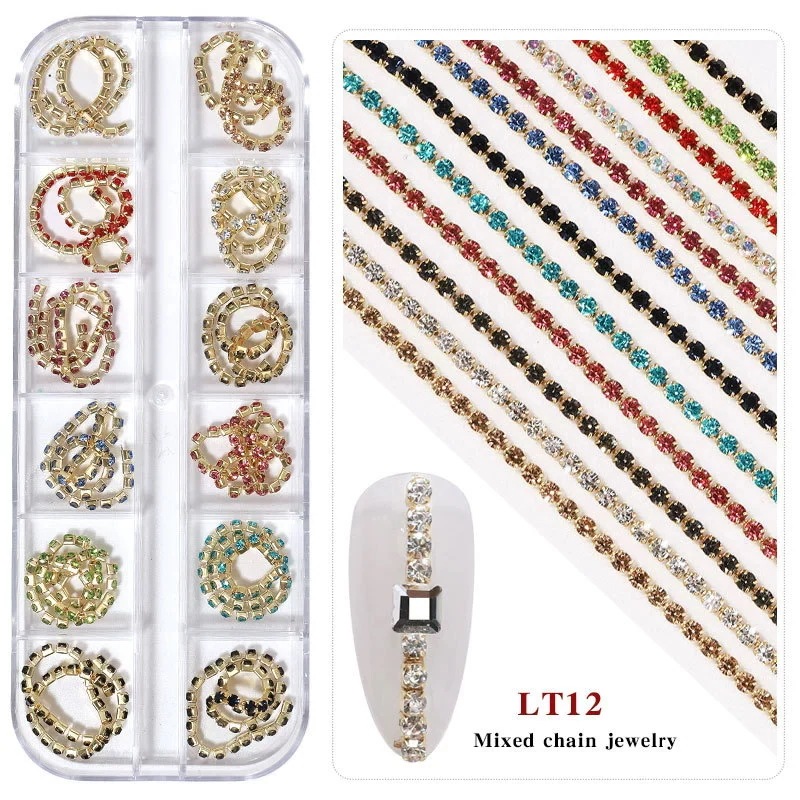 3Dネイルアクセサリー 12個セット メタルチェーン ネイルチャーム 収納ケース付き フェミニン ネイルパーツ デコパーツ 大人可愛い 結婚式 卒業式 パーティー おすすめ DIY ネイル用品