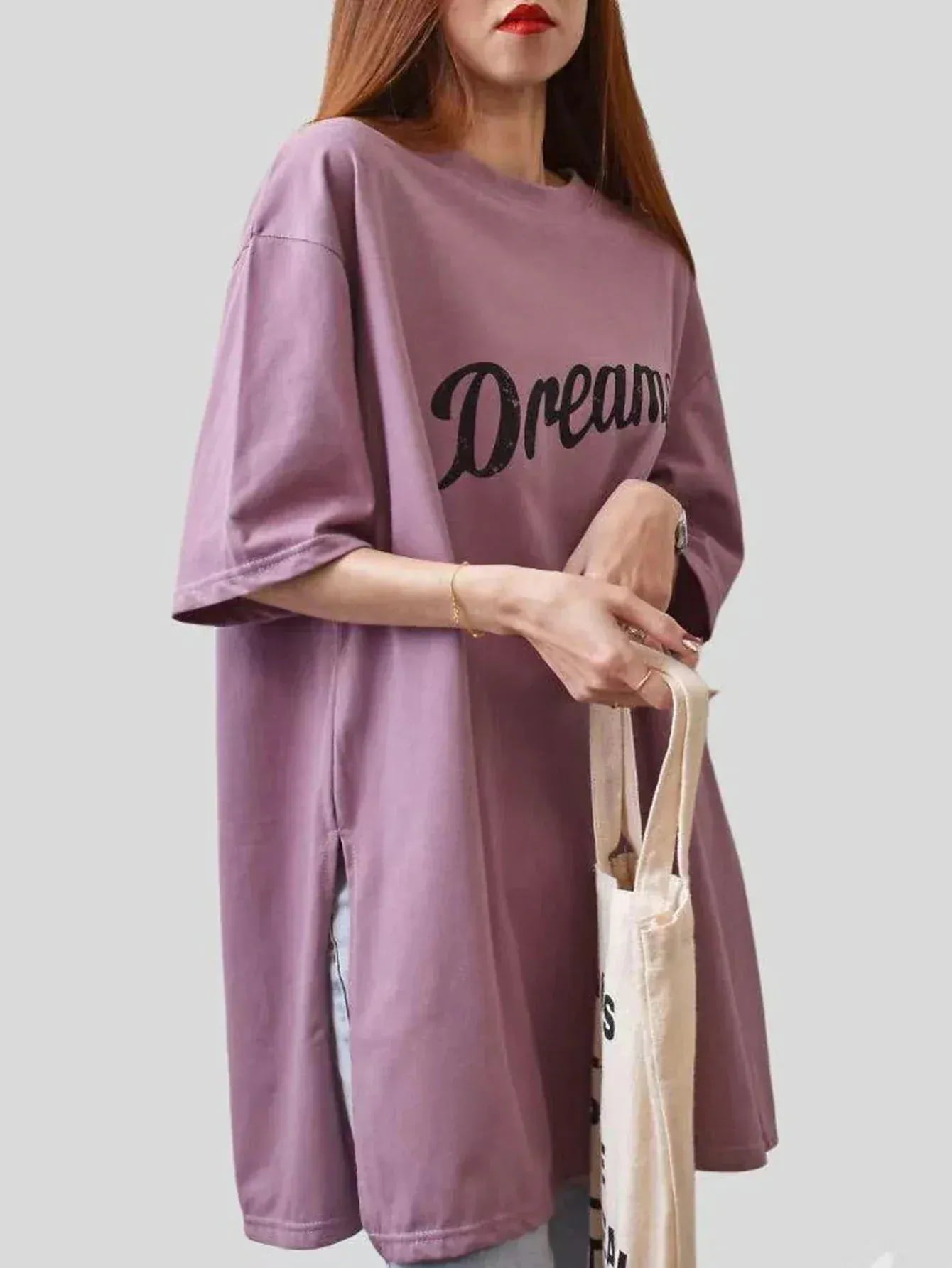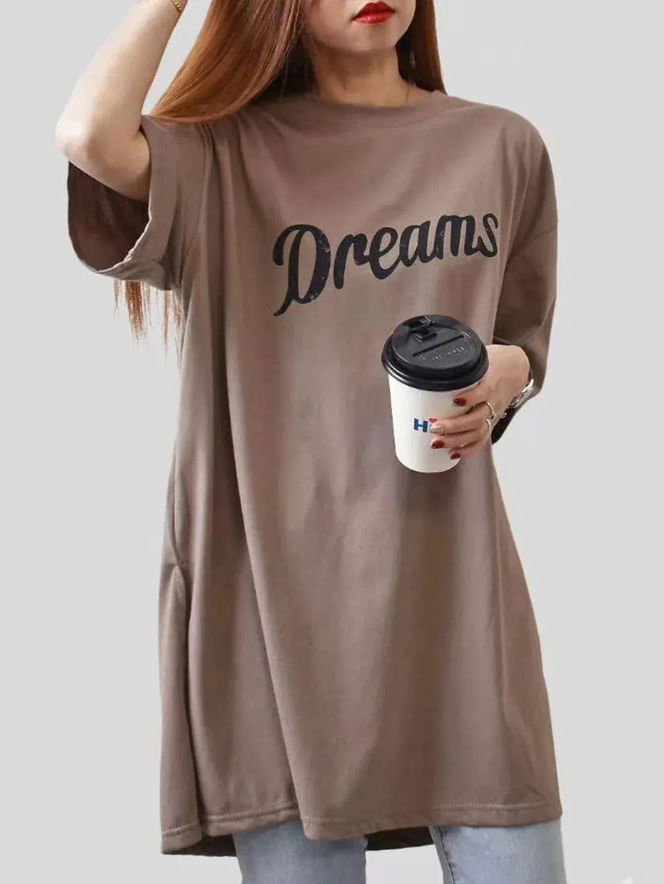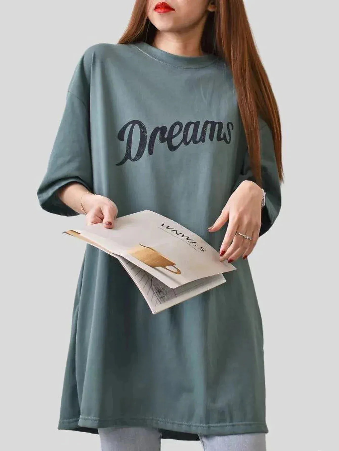 サラッとした生地で長めのTシャツです。