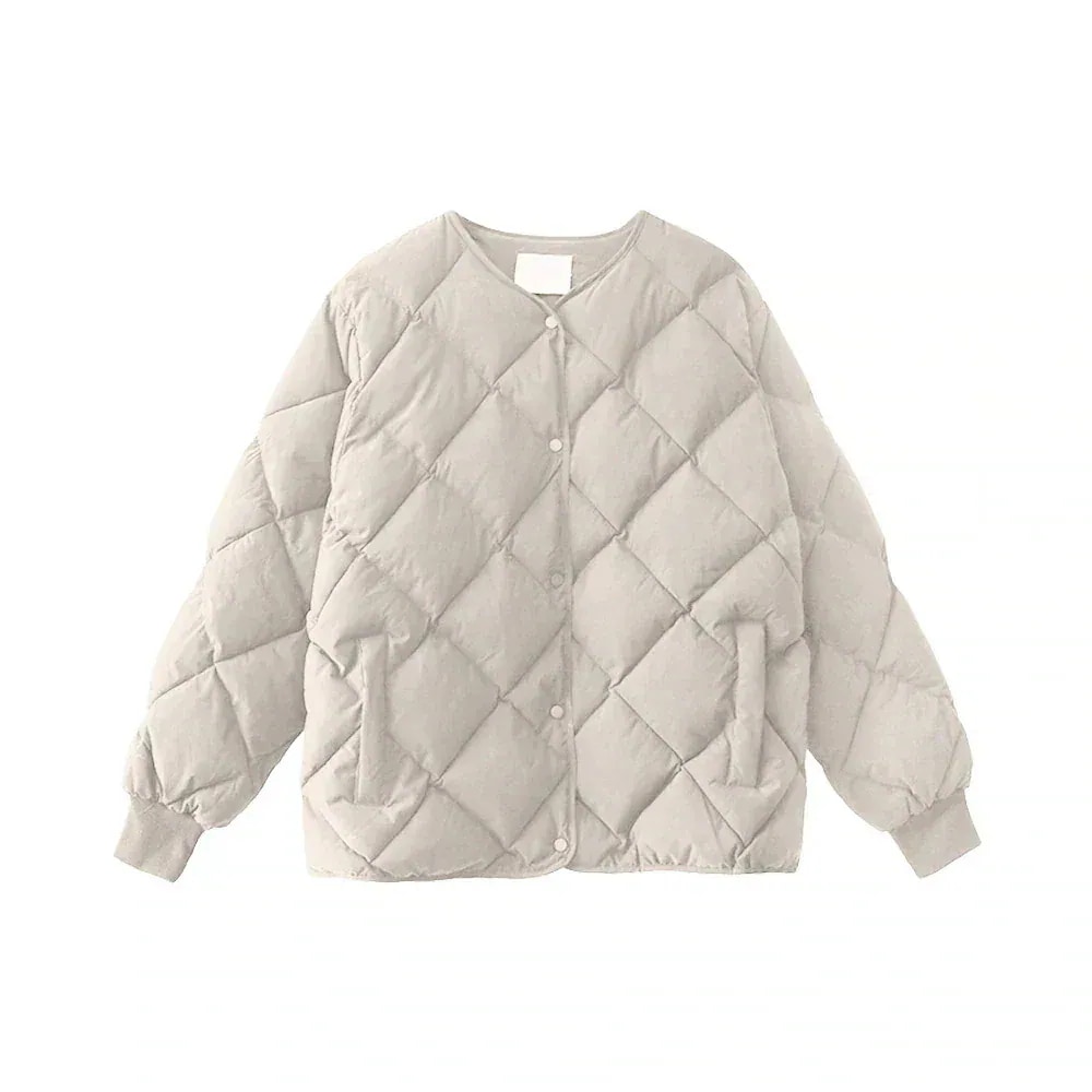 アイボリーを持っていてとてもよかったのでリピしました。同じショップかわからなかったのとその時よりすごく安かったのでペラペラかなと思っていたのに、ほぼ一緒です、今の時期には薄いですが、肌寒くなってダウンまではまだ早いかなって時期にはちょうどいいです、圧縮されて届きますがふわふわになりました