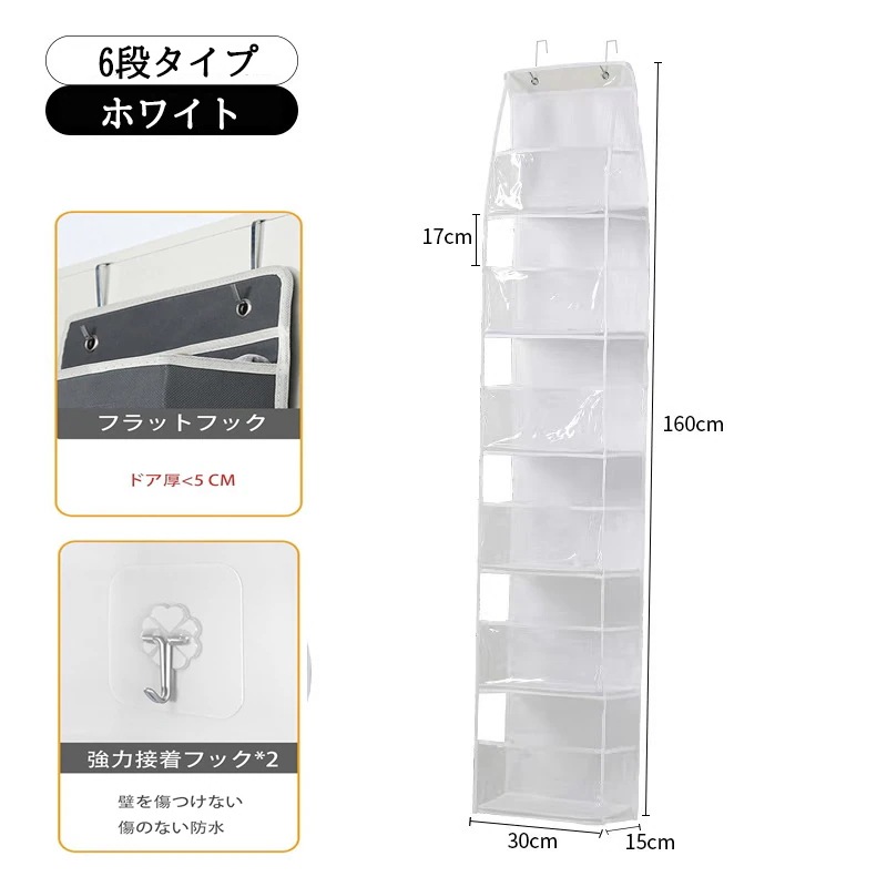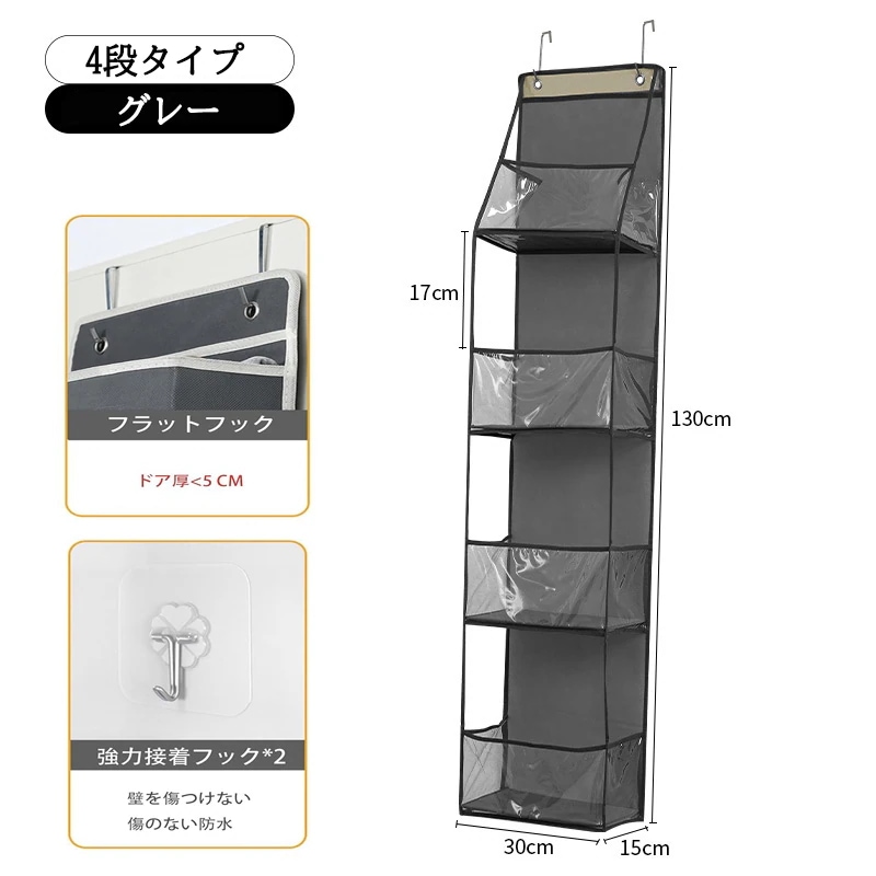 思っていたよりしっかりしてます^ ^ 何を入れているか外からも確認できて優れ物です(^-^) ドアに掛ける用と壁に吊るせる用の器具が入っているので何処にでも吊るせます(^^)