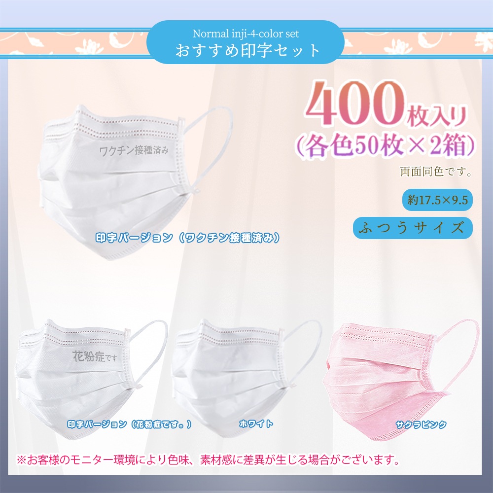 5 5y.n*** 2022.03.18 タイプ:400枚入りマスク(ワクチン接種アピール4色セット) サイズ:大きめサイズ(20*9.5cm)オプション : タイプ:400枚入りマスク(ワクチン接種アピール4色セット) / サイズ:大きめサイズ(20*9.5cm)