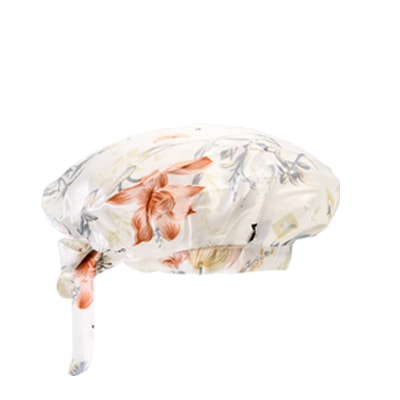 顔周りにゴムが使われていないので締め付け感がないのが良いです。共布リボンで結ぶ辺りにだけゴムが入っているのですが、そのおかげで後ろの髪を中に入れやすいです。季節もありますが、少し暑いなぁとは思いました。