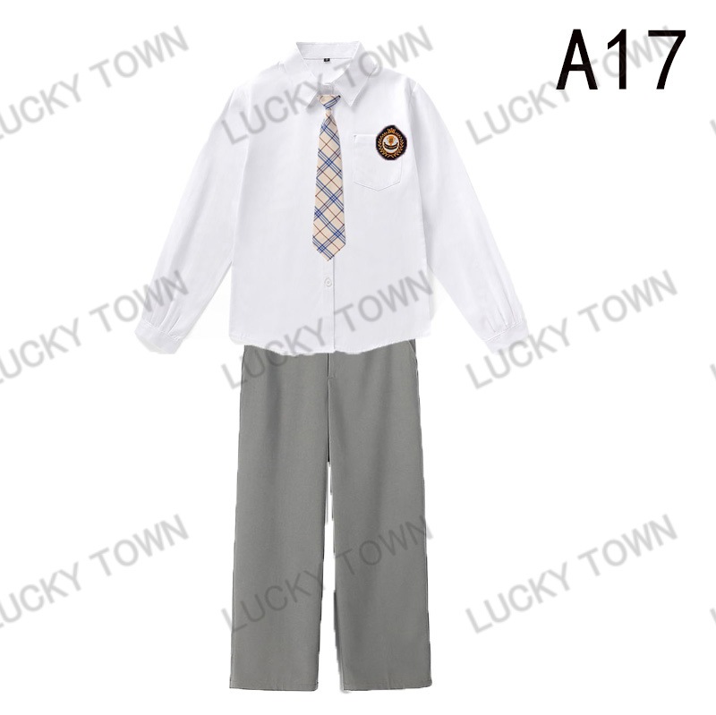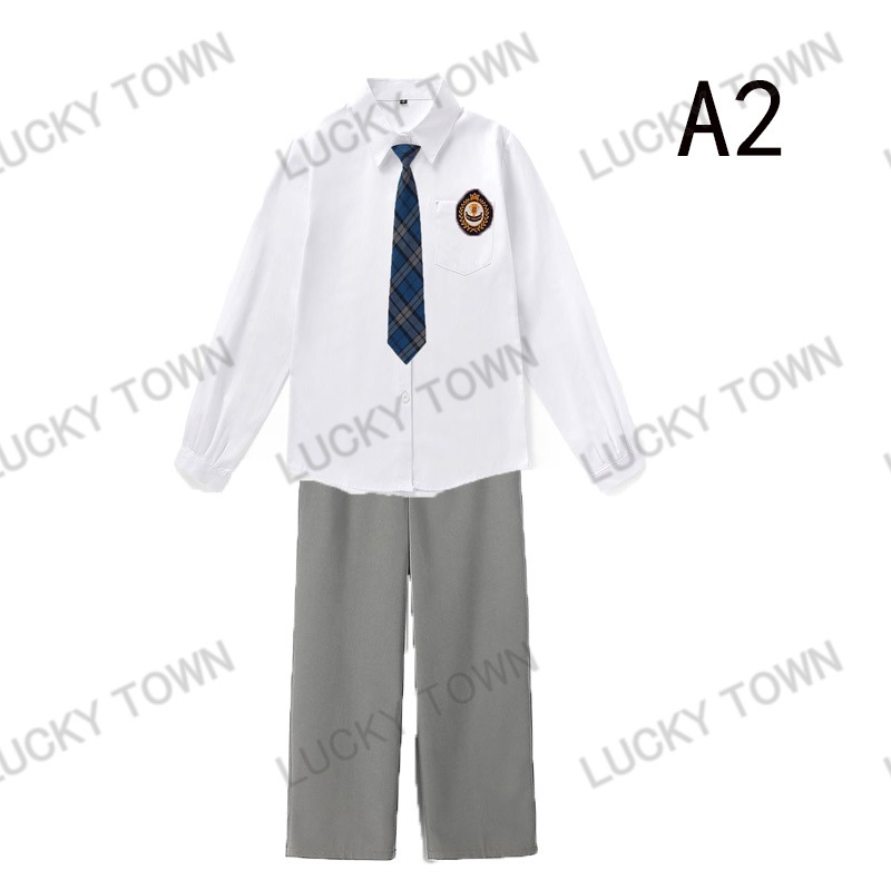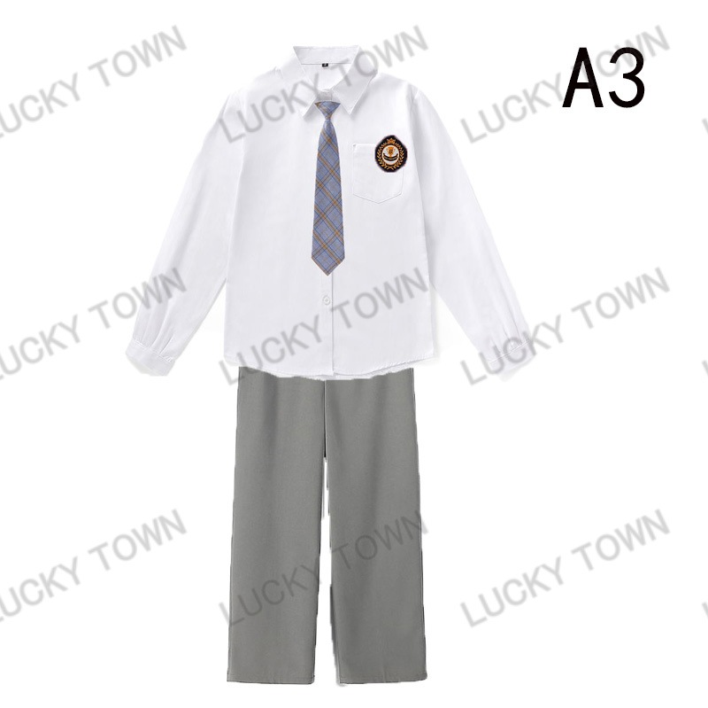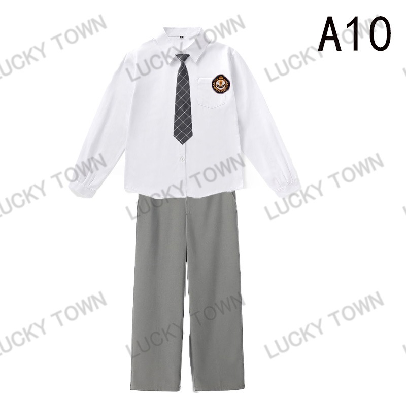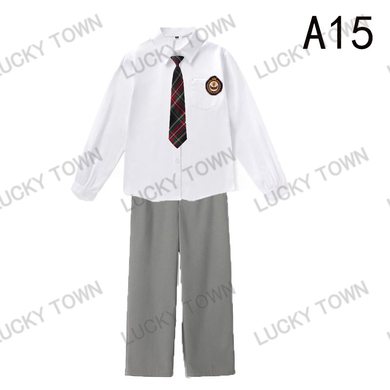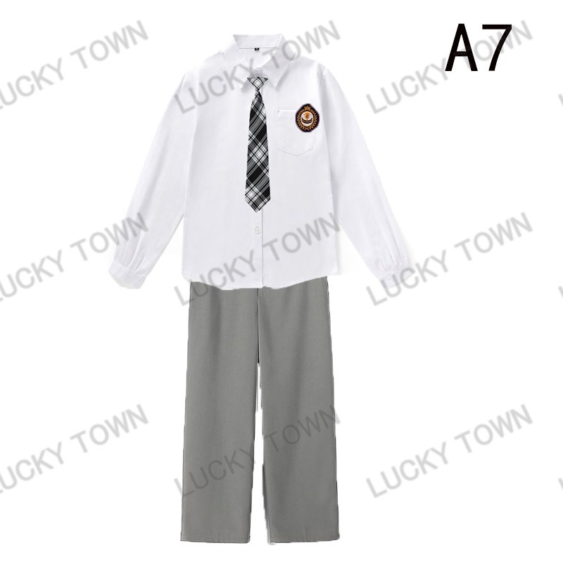 男子 長袖 スクールシャツ 白 ネクタイワッペン 長ズボン 4点セット 男 中学生 高校生 学生服