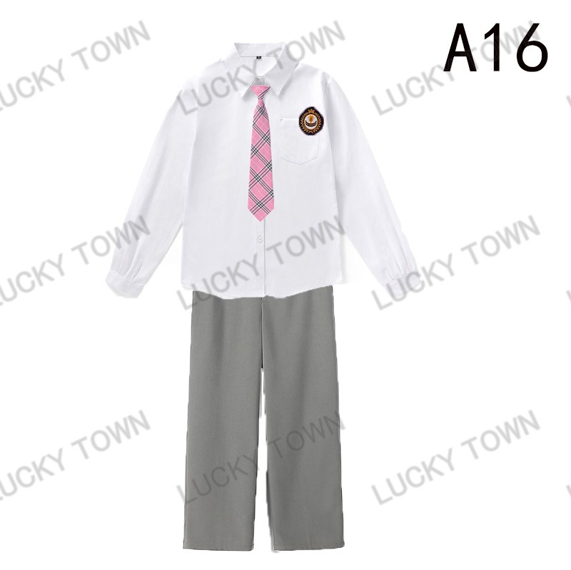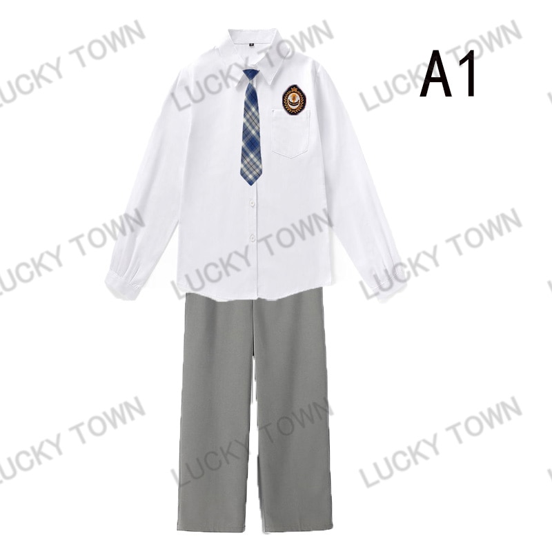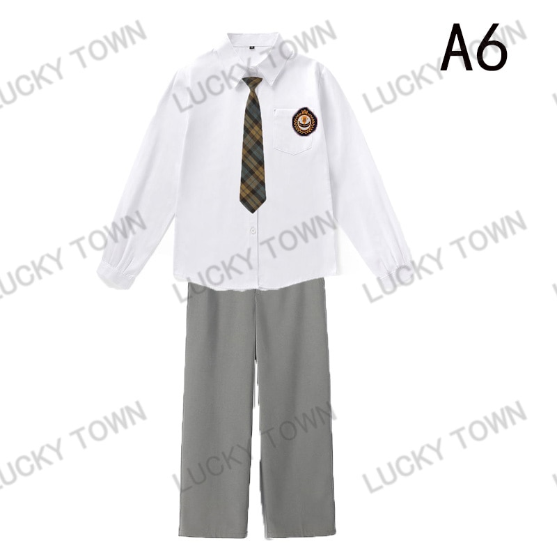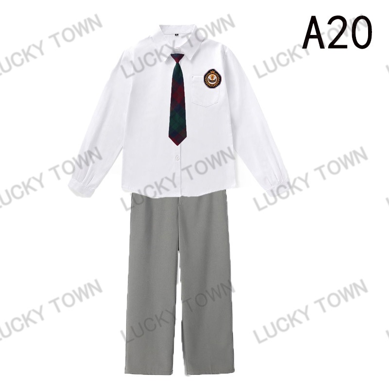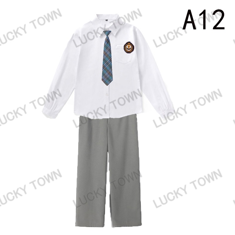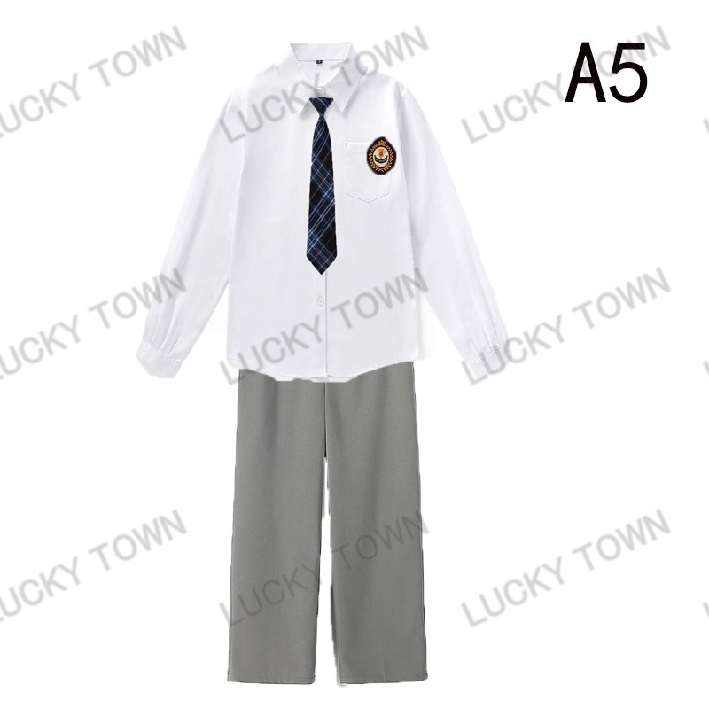 男子 長袖 スクールシャツ 白 ネクタイワッペン 長ズボン 4点セット 男 中学生 高校生 学生服