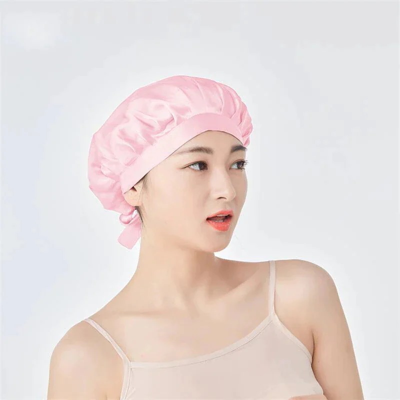 洗い替え用に買いました。被るのと被らないのじゃ本当に翌朝の爆発具合が違うので、欠かせません。ゴムは跡が残るのでヒモタイプなのも良いです。