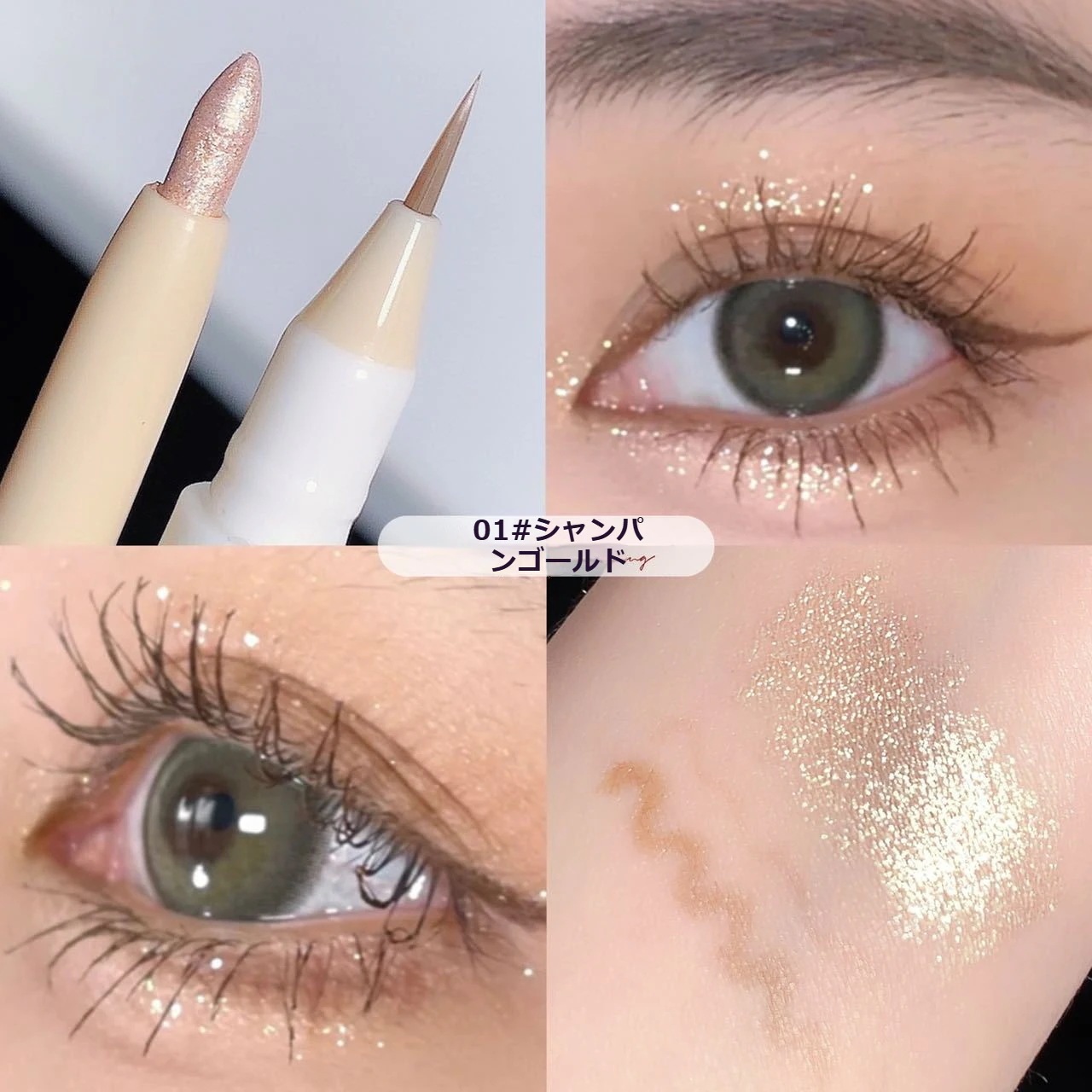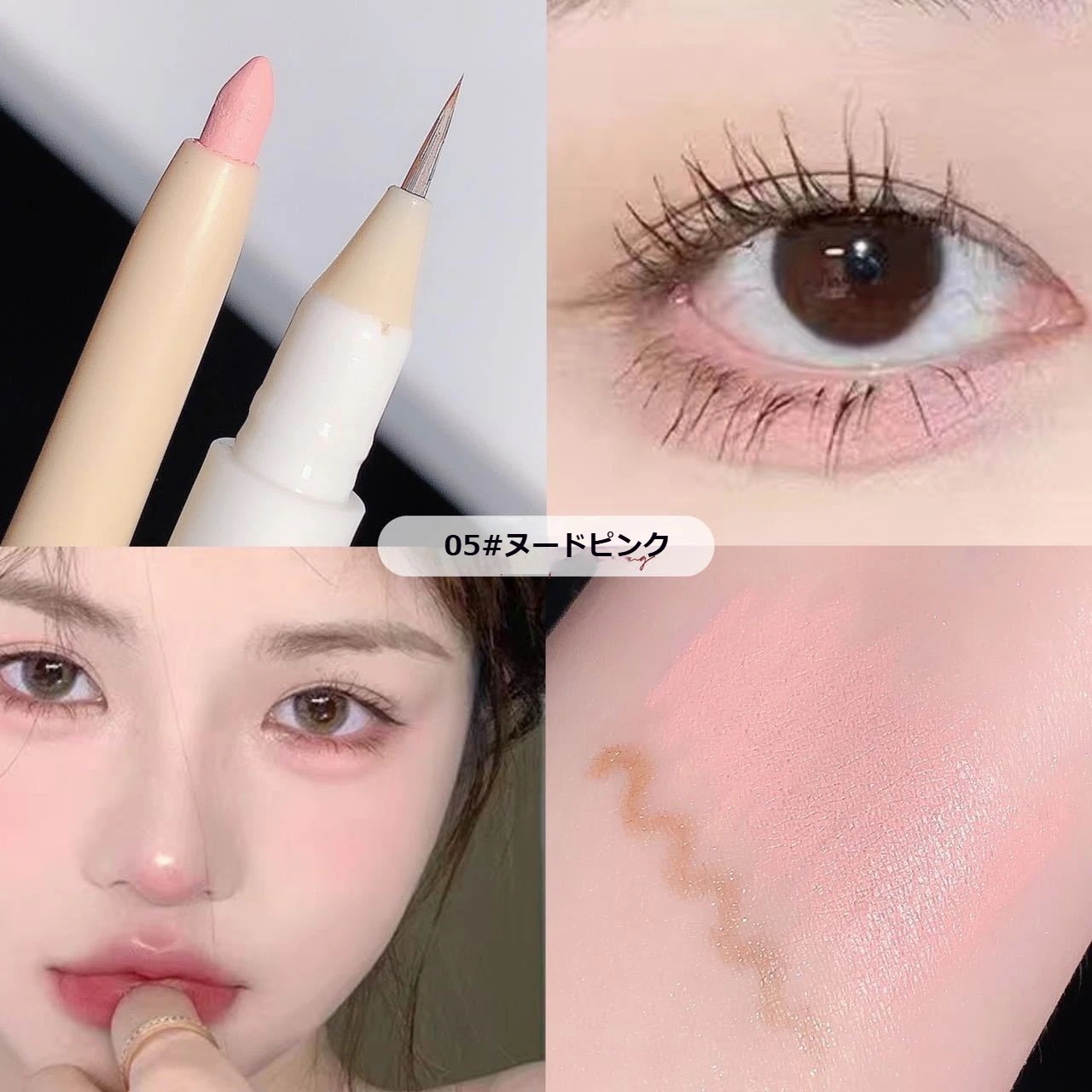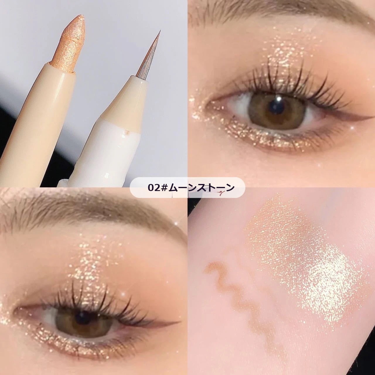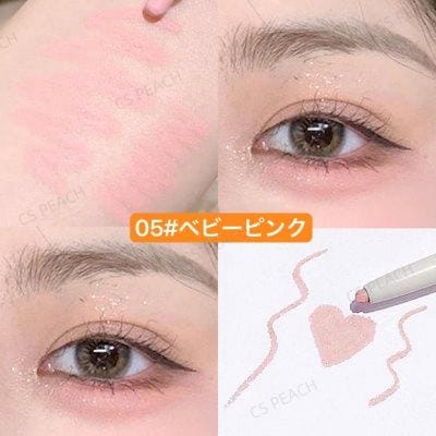 ④めっちゃキラキラはしないですが、ピンクゴールドみたいな色味で血色感を足せて肌馴染み良くて可愛いです。筆タイプはペンシルタイプより目元に負担にならずスルスルかけるのも良いです👍🏻