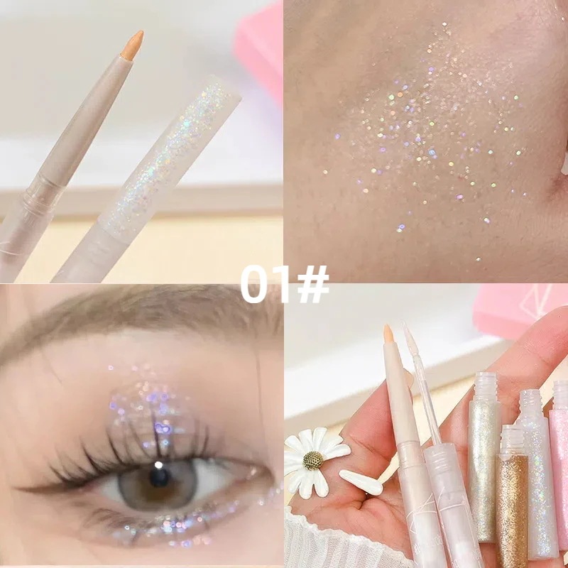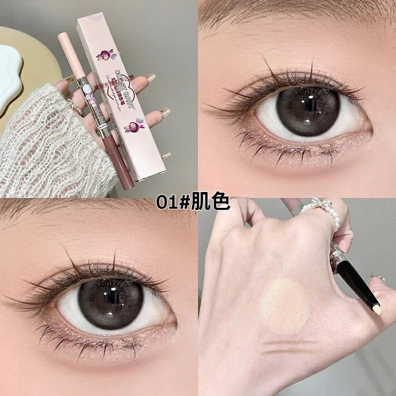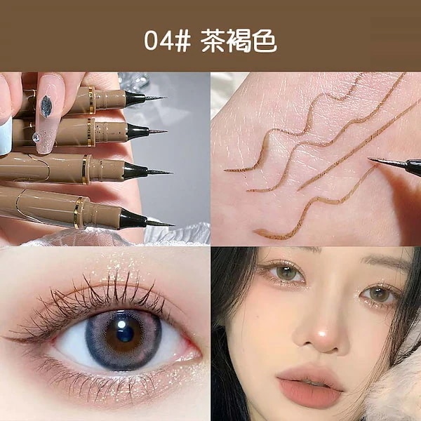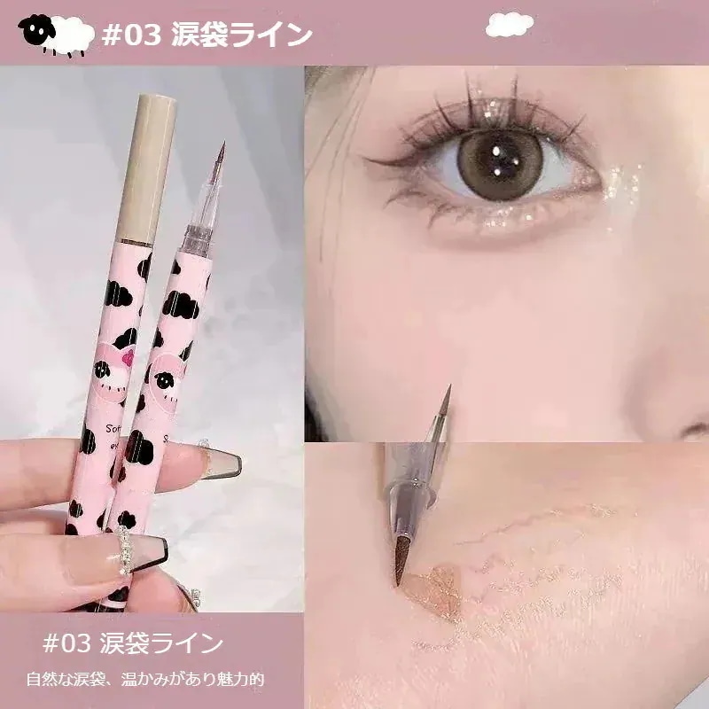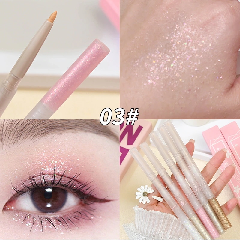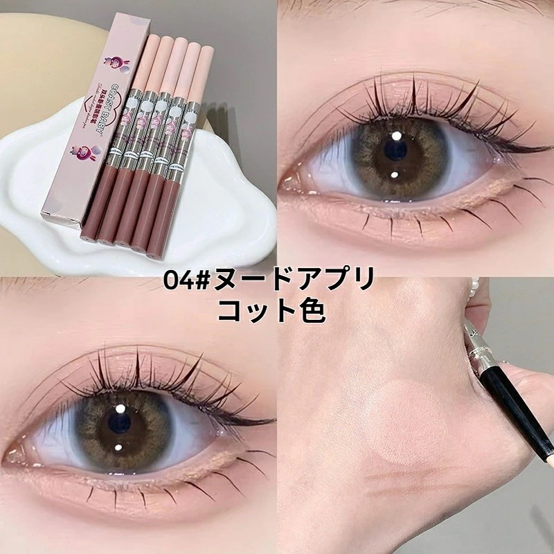 ④めっちゃキラキラはしないですが、ピンクゴールドみたいな色味で血色感を足せて肌馴染み良くて可愛いです。筆タイプはペンシルタイプより目元に負担にならずスルスルかけるのも良いです👍🏻