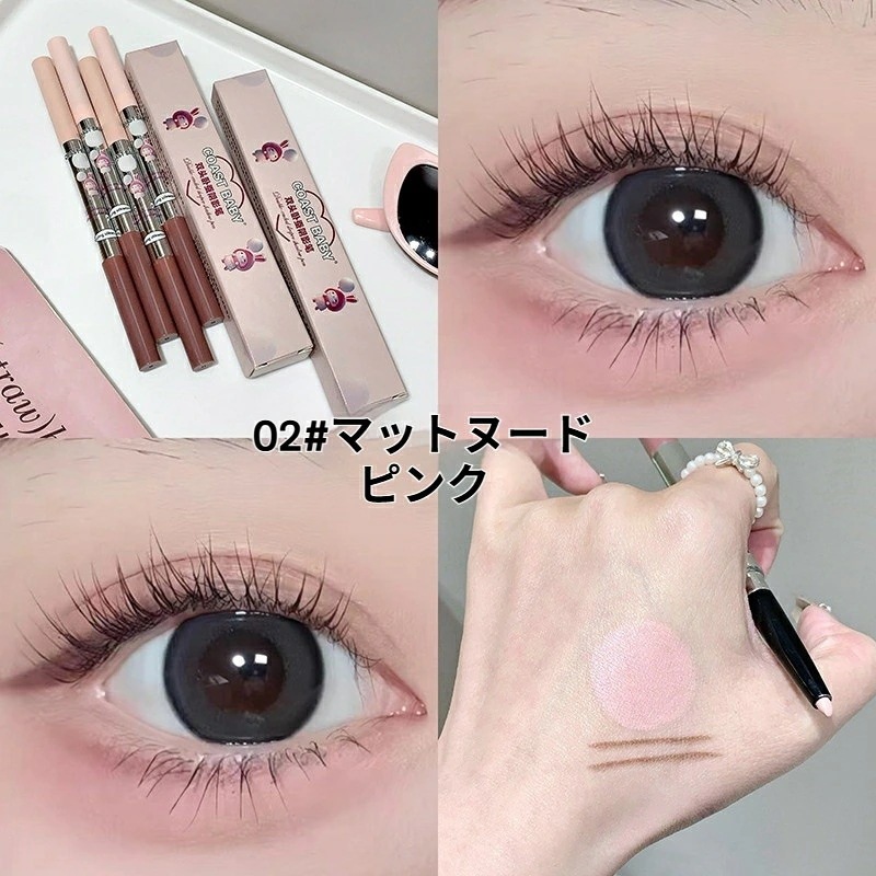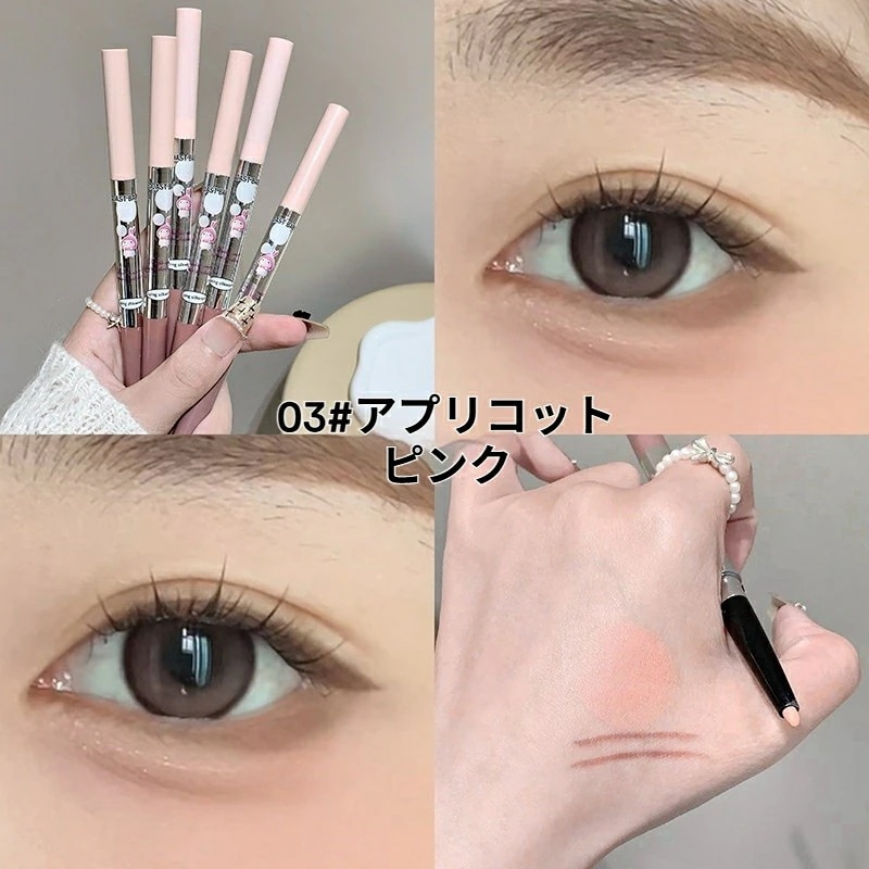 ②これが今回購入したペンシルタイプの中では1番目元に書くときは軽いタッチで書けました。とはいえ筆タイプに比べるとそれなりに圧をかけないと公式さんの画像みたいに発色しないです。①よりピンク感は弱め。