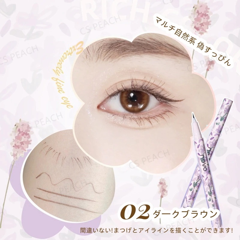 アイライナーの方はテクスチャが柔らかくてスルスル書くことができるのにも関わらず、擦っても落ちにくくてとってもいいです!若干太いので描きにくいかもしれません。