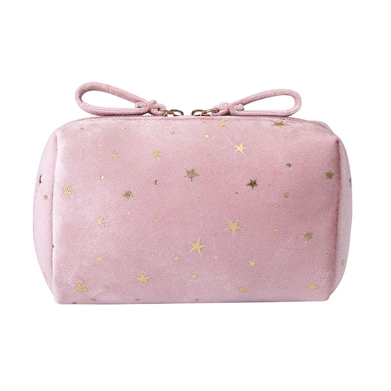 星柄 パイル生地 化妆ポーチ コスメポーチ メイクポーチ 仕切り付き 旅行用 大容量 収納便利 自立式 ポーチ 収納 バッグ 女性 日常用 レディース 小物収納