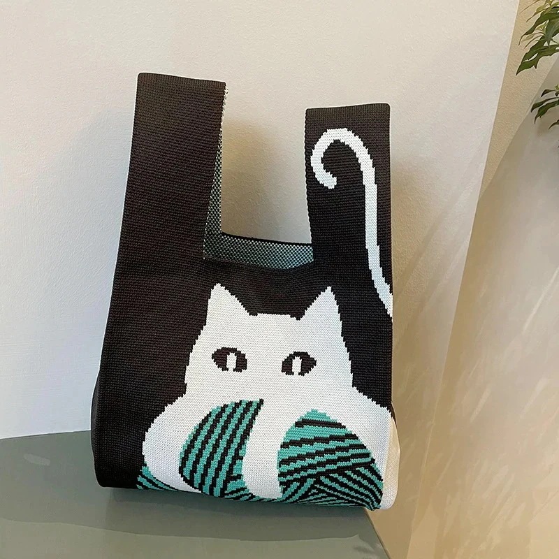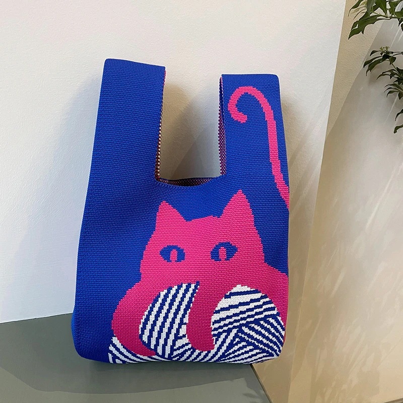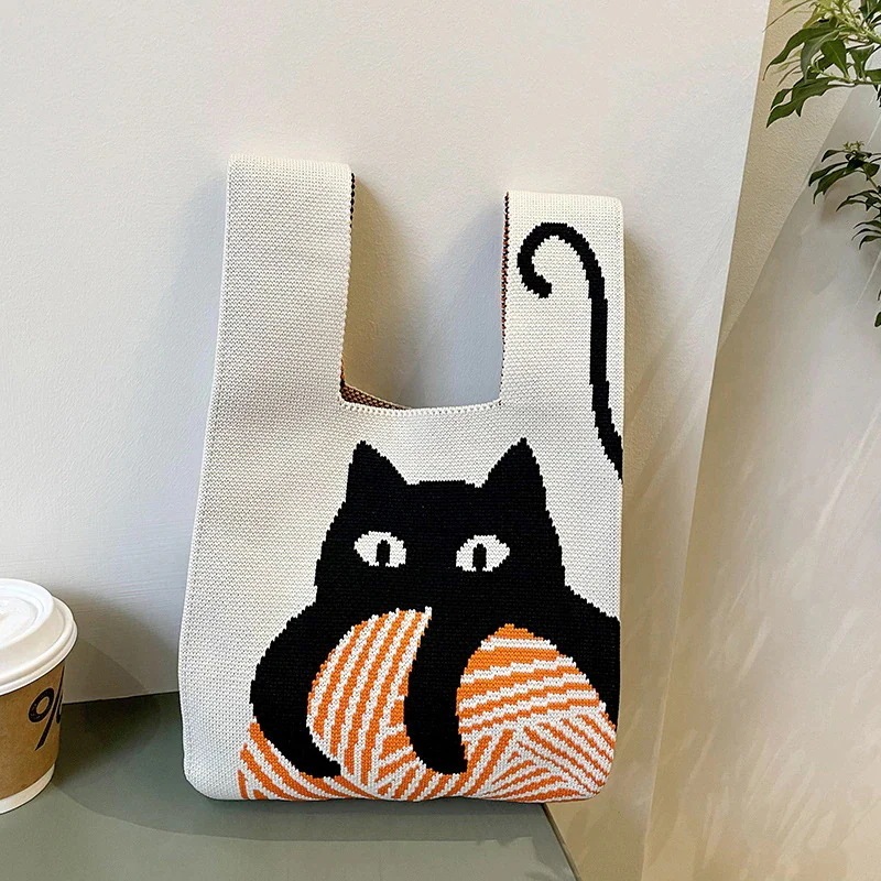ニットバッグレディースデザインキャラクター猫編みハンドバッグ手提げバッグタンクトップバッグベストバッグレディースバッグ C8/6-1684