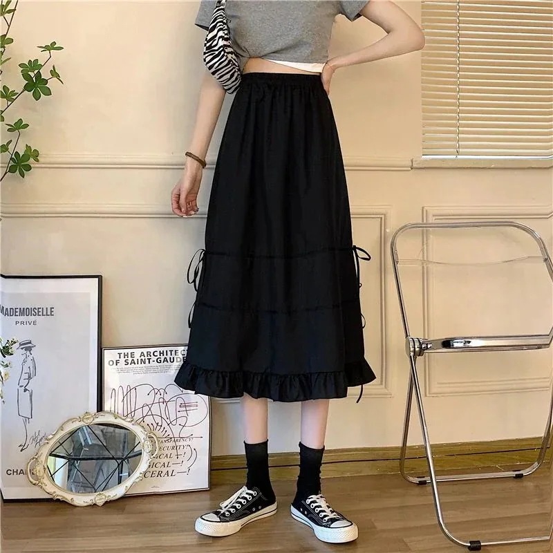 ティアードスカート マキシスカー プリーツスカートタイトスカートティアードスカート 韓国ファッションハイウエストタイドプリーツエア