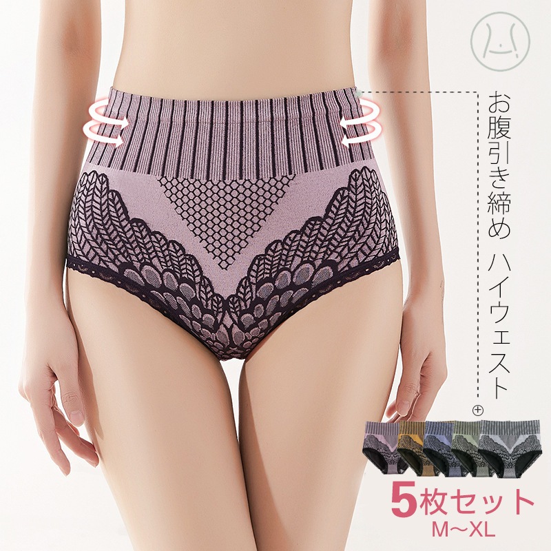 即納 5枚セット ショーツ 下着 ショーツ レディースショーツ ハイウエスト ガードルショーツ