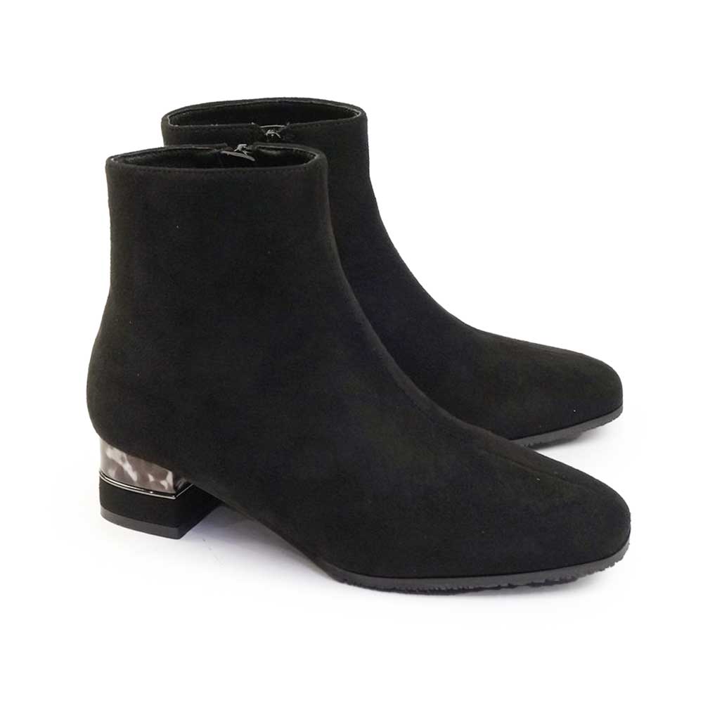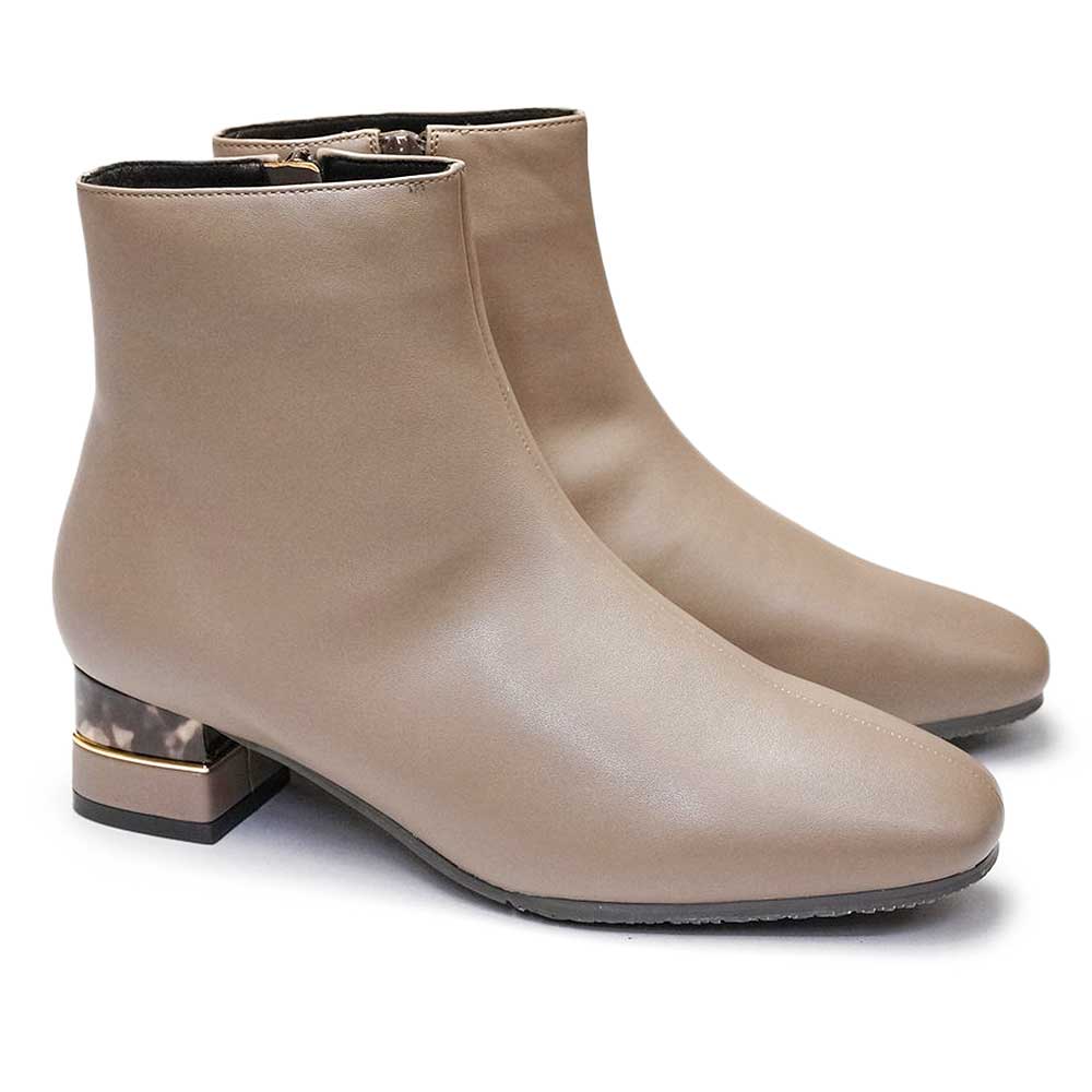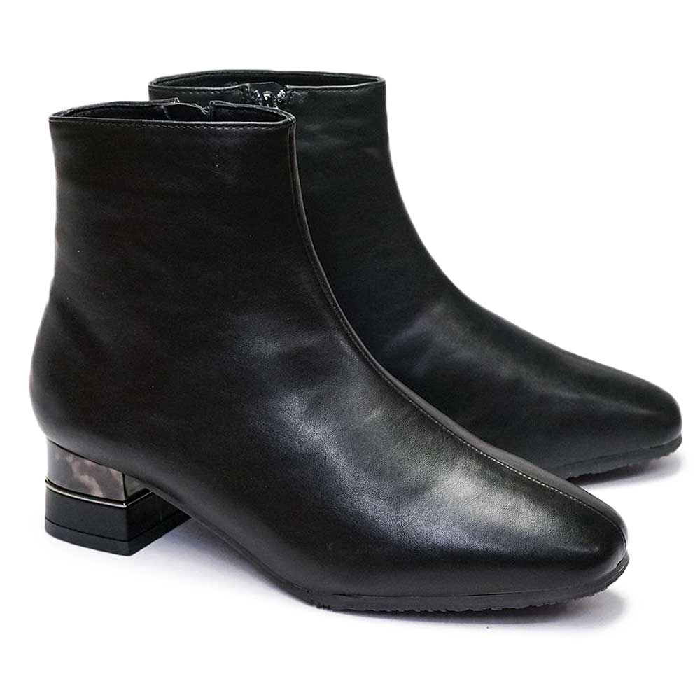 tehenレディース ショートブーツ TN1764 サイドジップ 靴 スクエアトゥ レザー シンプル 撥水 ストレッチ素材