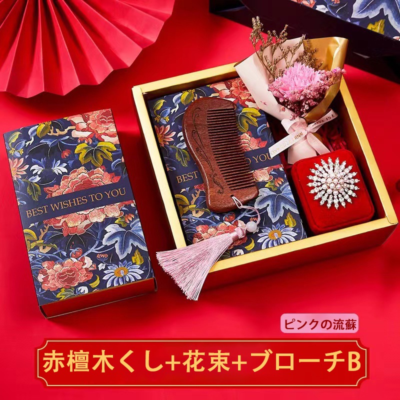 5 5fuu*** 2022.07.04 Type:(ピンクの流蘇)赤檀木くし+花束+ブローチAオプション : Type:(ピンクの流蘇)赤檀木くし+花束+ブローチA