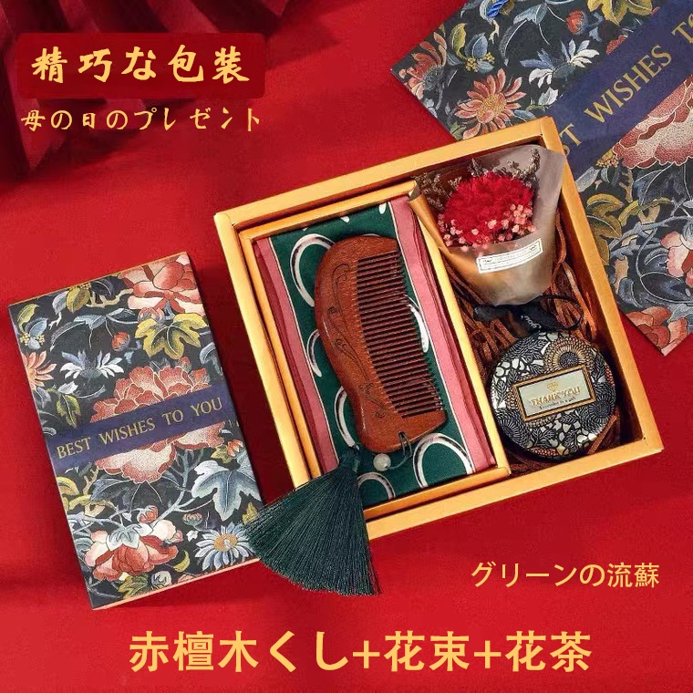 4 5tak*** 2022.06.12 Type:(グリーンの流蘇)赤檀木くし+花束+花茶オプション : Type:(グリーンの流蘇)赤檀木くし+花束+花茶