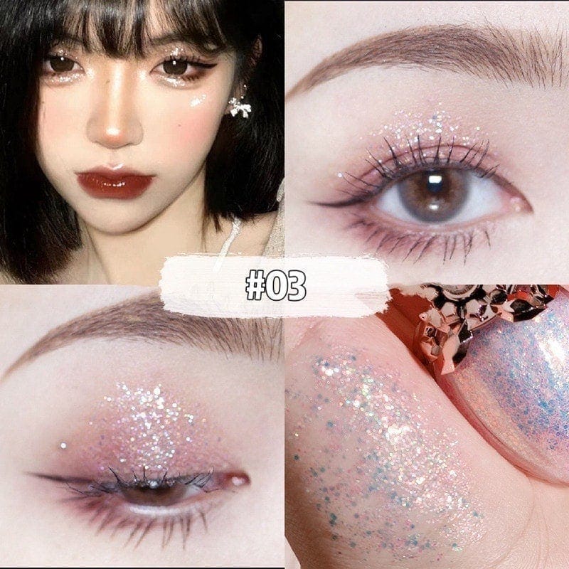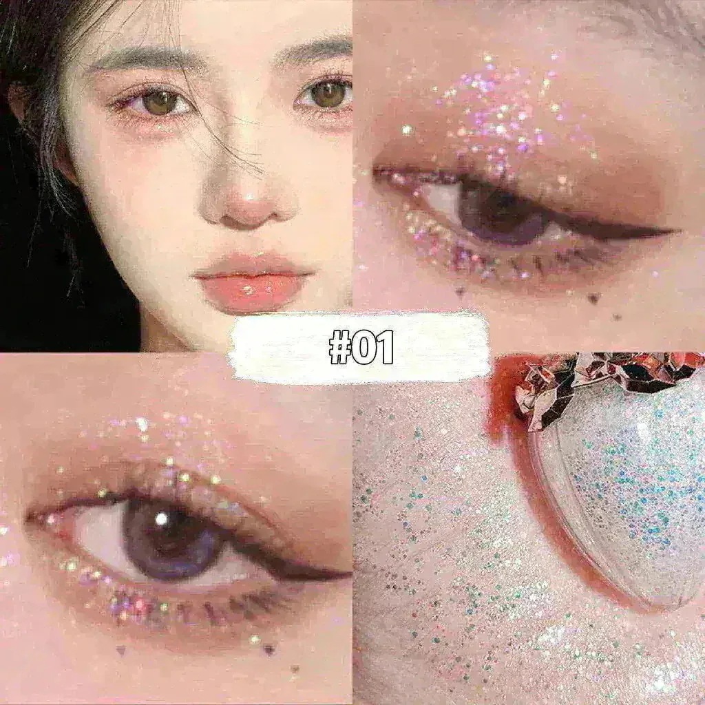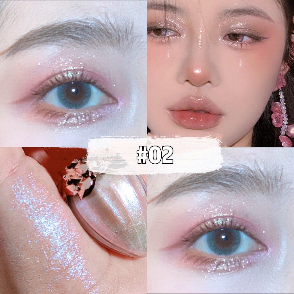 ②を購入しました!3種類のなかで一番粒が小さそうだったので、わざとらしくならなくて良いかなと。アイシャドウのような細かいラメで普段使い◎です。色味はブルー系なのでブルベ向きだと思います。(画像の黒プラ部分に塗ってみました)筆がやや固めなので指かチップで馴染ませています。