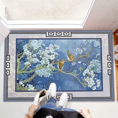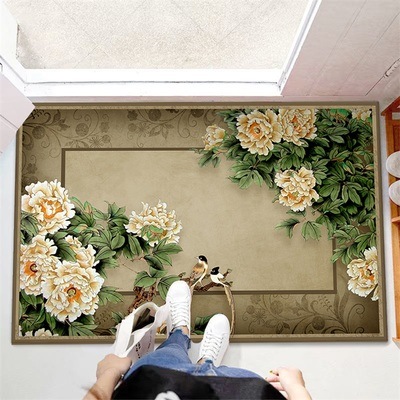 玄関に敷いてみるとなかなか良い感じで華やかになりました。生地は期待していたより薄い感じで滑り止めはありますが動くので更に滑り止めを敷いて使いたいと思います。
