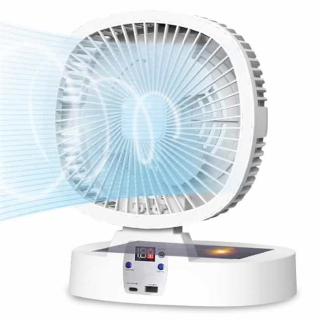 ソーラー充電 扇風機 折りたたみ式 リモコン操作 キャンプ扇風機 5段階風量 調光3段階LEDライト 小型ソーラーパネル付き 5000mAh電池 USB&Type-Cポート コンパクト収納