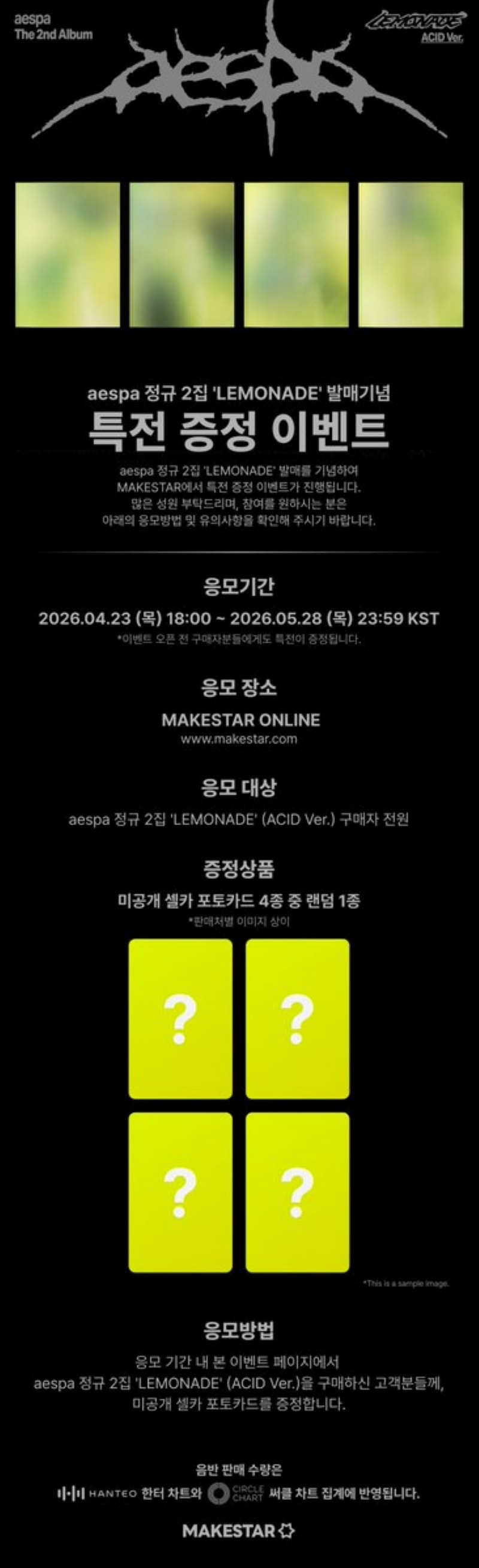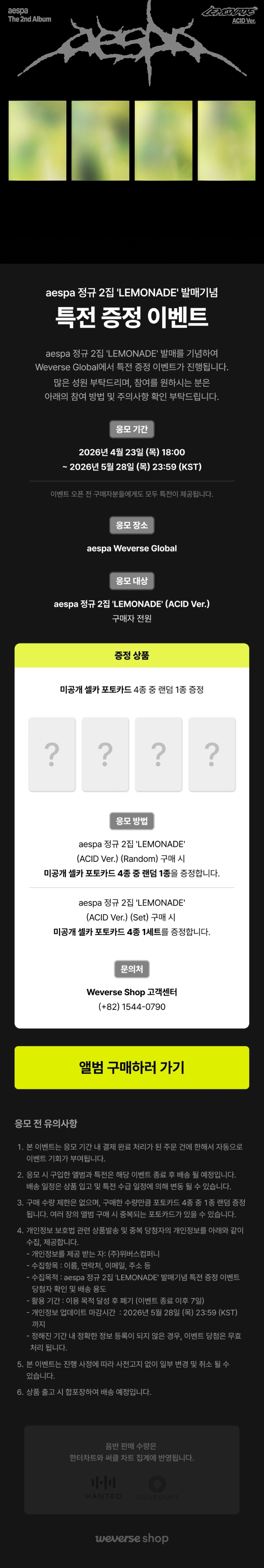 発売から比較的早く届きました!ランダムでカバー、特典トレカともにニンニンちゃんでした☺️特典トレカはちゃんと硬質ケースに入っていて、折れる心配がないのが嬉しい♪ aespaのビジュアルは毎回派手&ゴージャス✨で楽しみです💕封入は推しのウィンター😍不備もなく大満足です!