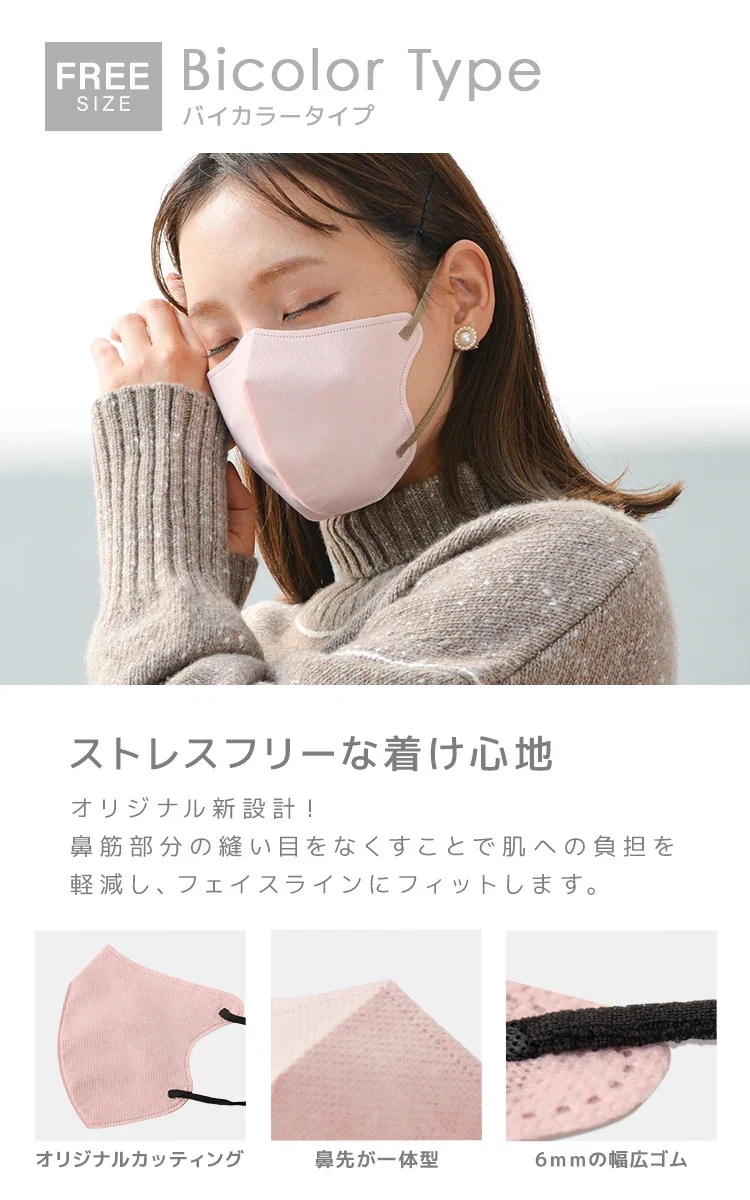 バイカラーがとても可愛くて、息もしやすいので、購入して大正解でした!!追加で色違いもリピートしたいなと思いました(*^^*)