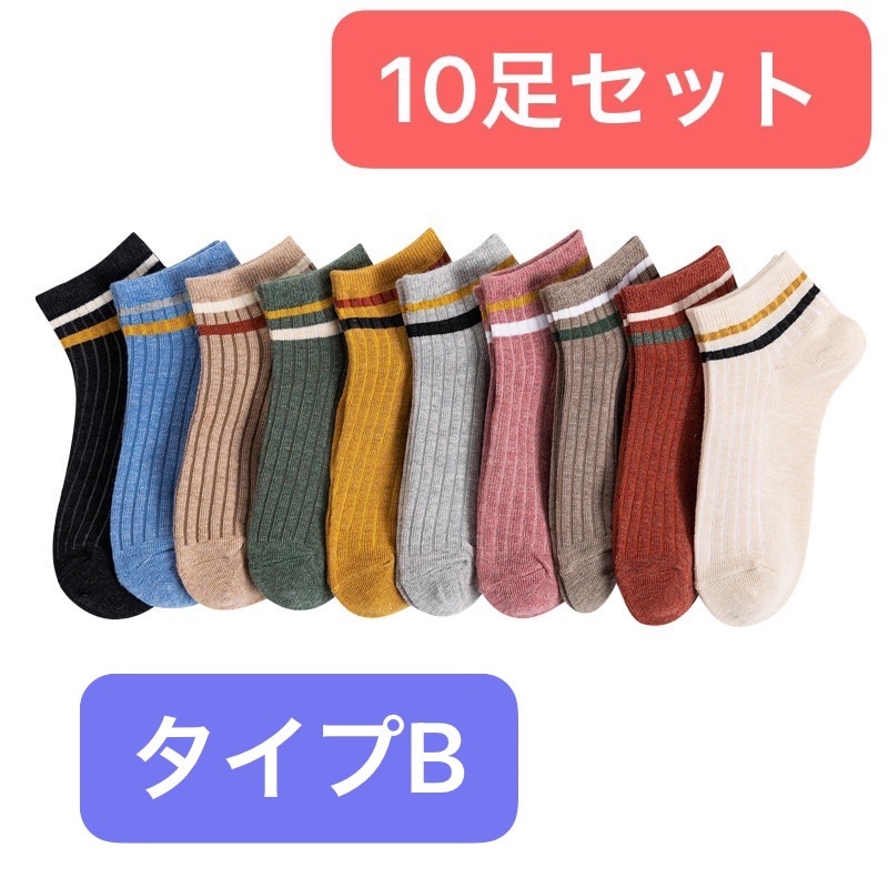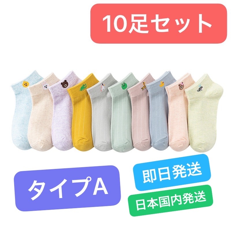 くるぶし丈靴下10足セット。ワンポイントデザインが妙に可愛かったです。仕事用で履きたおします。