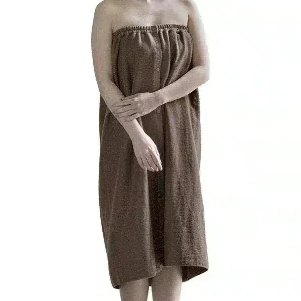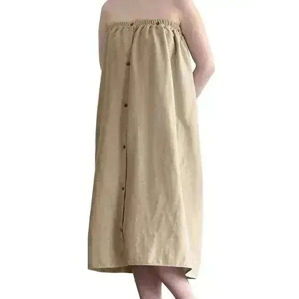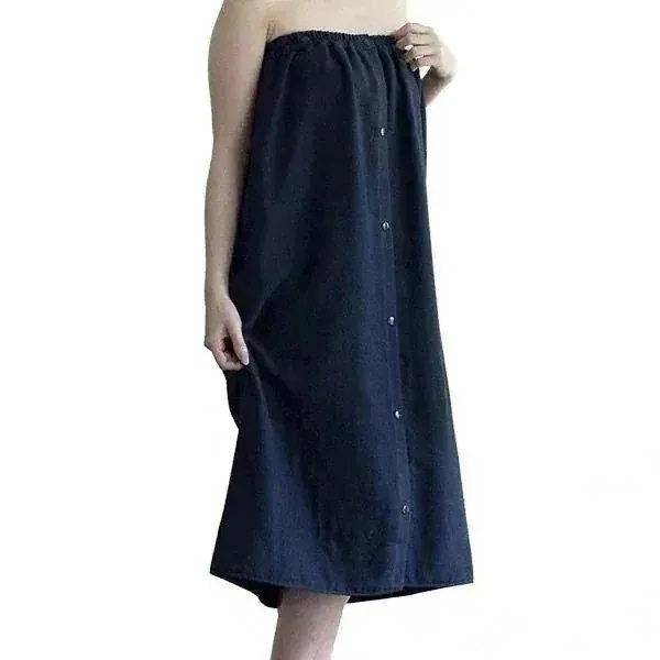 理想のラップタオルでした。胸元のゴムの部分が分厚くならず、肌触りもとてもいいです。紺色を買ったので糸くずなどがつくと目立ちますが、払えば済むことだし厚みがないので銭湯に持って行く時にも嵩張りません。スナップボタンも硬くないしいい具合です。