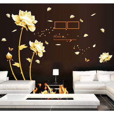 ウォールステッカー 黄金の花と蝶 フォトフレーム 壁紙シール おしゃれ 英文字 貼り方簡単 豪華絢爛 模様替え 手作り 思い出 部屋 玄関