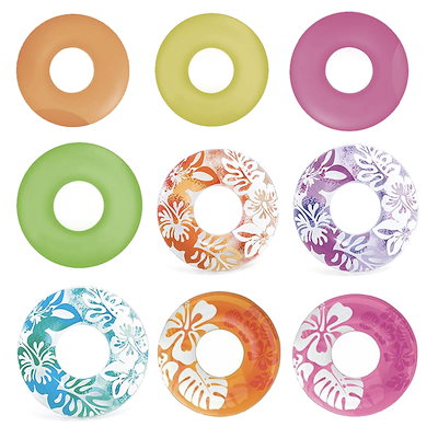 インテックス浮き輪 子供 フロート ベビー キッズ 蛍光 ネオンカラー ハイビスカス 90cm 子供用 海 プール