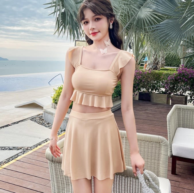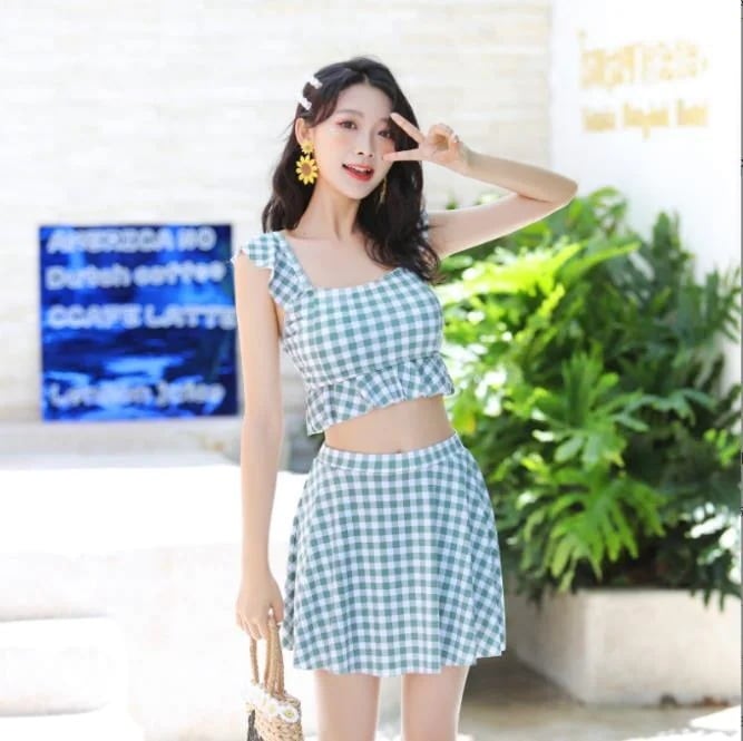 ウエスト細めなので160cm52キロですがMを買いました。スカート丈は太もも半分より上が隠れるくらいで短めでしたが、上半身はピッタリでした!