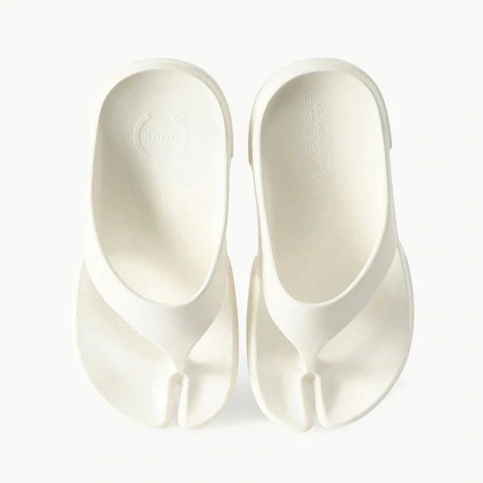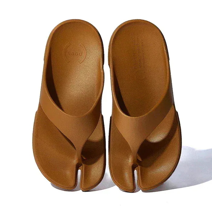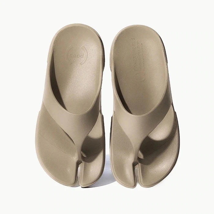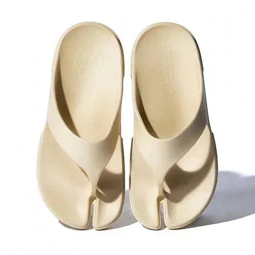 普段スニーカー等は24.5~を履いてますが、サンダルなので24にしてみました。ザ・ピッタリ、という感じ。脱げなさそうです。そして凄く軽い。買う前から気になってた鼻緒部分、少し耐久性が心配です。