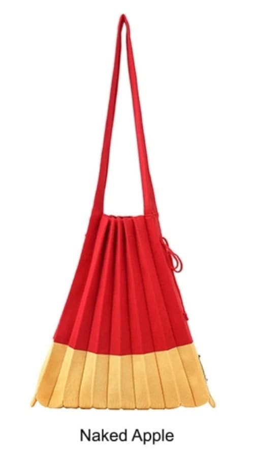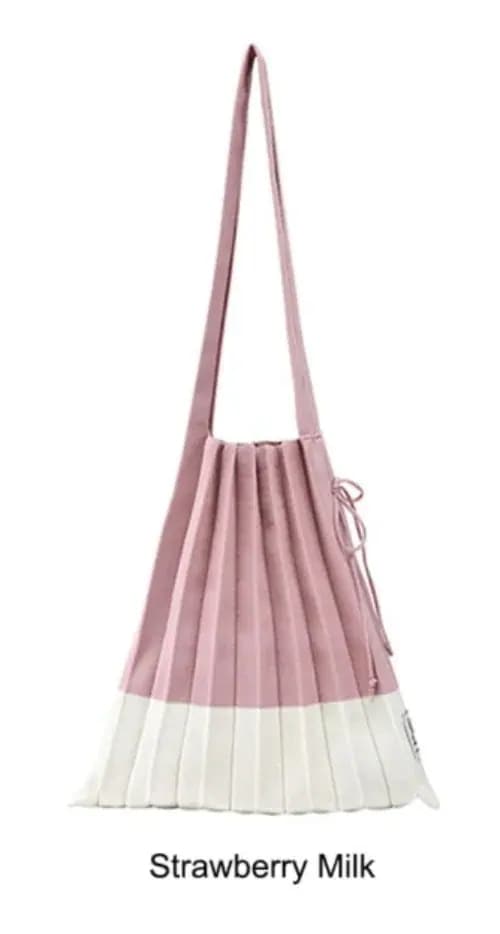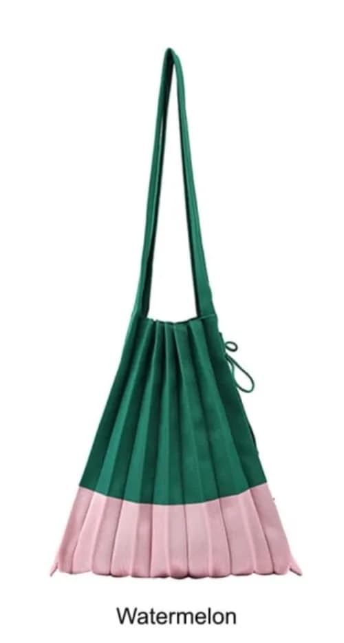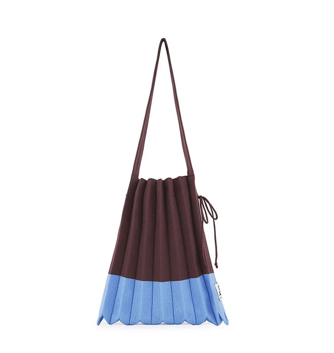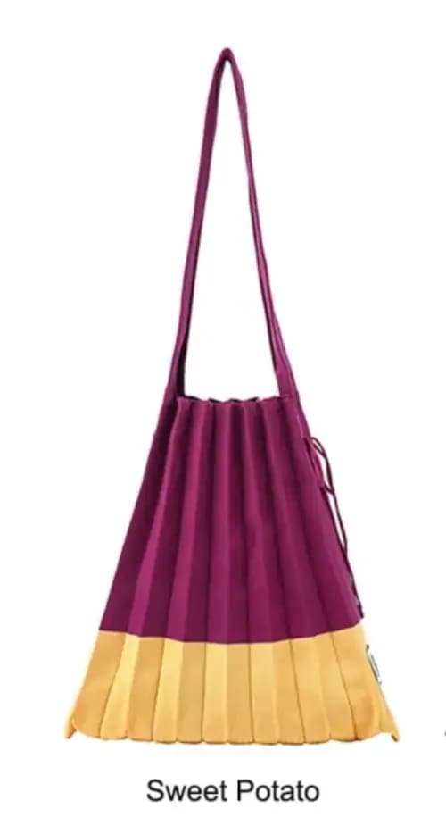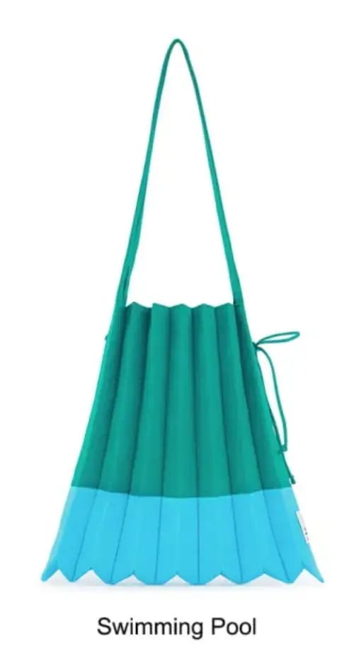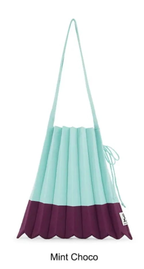 折りたたみできるバッグで可愛いです。ニット生地なので、あんまりたくさん荷物を入れると寄れてしまうと思います。