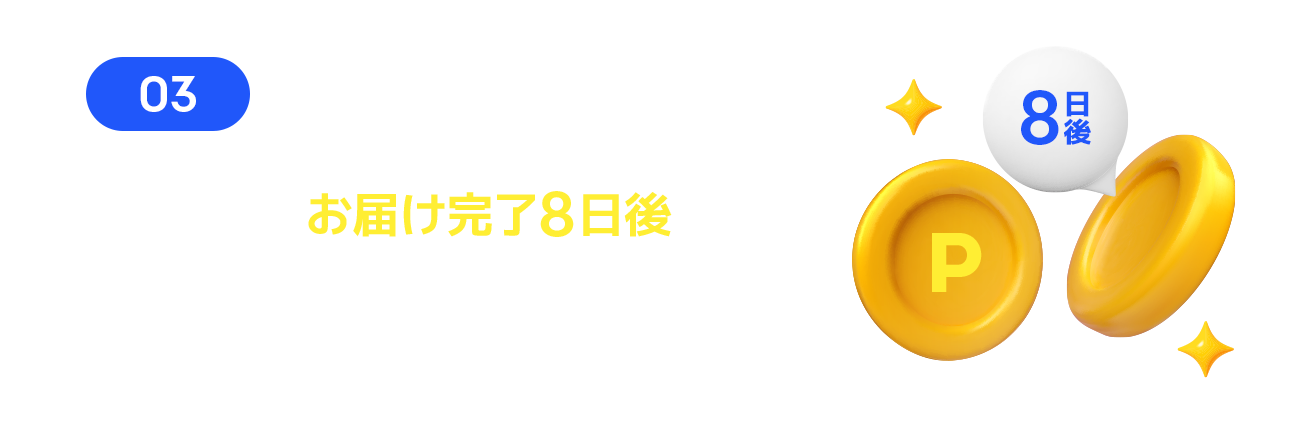 また、メガポ終了日から30日経過した時点と、45日経過した時点で弊社にて確認を行い、返品・交換申請の撤回されている場合や、交換申請が承認され完了している場合は、メガポ終了日から30日/45日が経過した時点にポイントが還元されます。