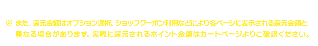 - 返品等によりキャンセルされた商品は、ポイント還元の対象外となります。
