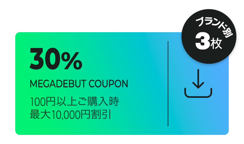 - メガデビュークーポンは今日のメガデビューブランド商品(メガデビュータグ付き商品)にのみ適用できます。