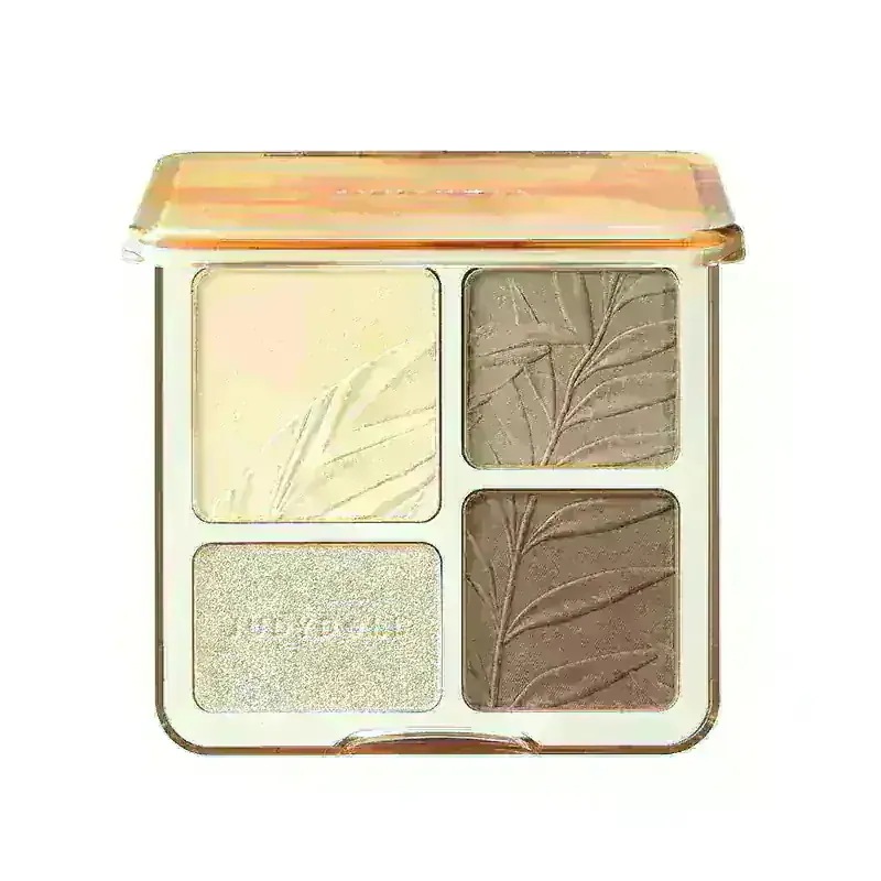 パケ可愛すぎない?ラメが散りばめられてるのほんと天才!色味は1番暗い色は黄味が少なめのブラウンって感じで良いんだけど、2番目に暗い色(右上のカラー)が結構グレー味強いかも!塗りすぎると浮くけど薄く塗るならいけるかなって感じの色味だよ!マットハイライトはピンク味あるから血色感出て可愛い!ハイライトはツヤってよりは細かいラメ感あるハイライトだった!