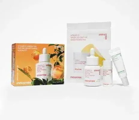 リピートです。 敏感肌で他のビタミン美容液は瞼が腫れたりして使えませんがイニスフリーは継続してずっと使えてます。今回はお得なパックを。おまけもいつもありがとうございます!