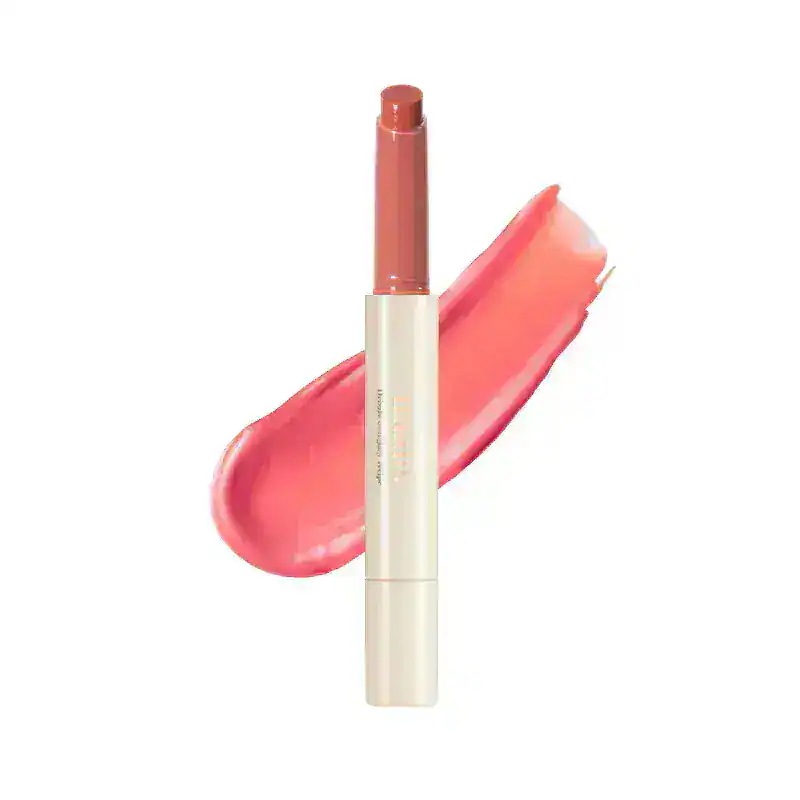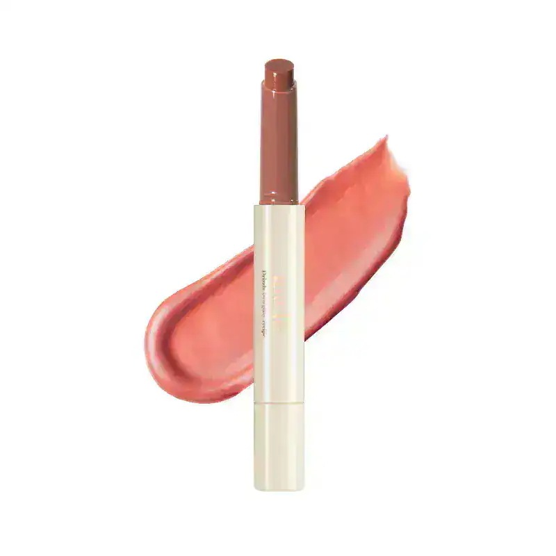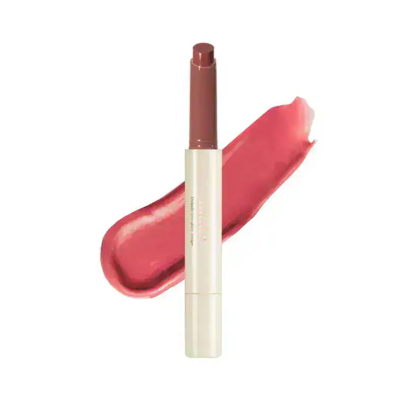ジャータイプの色付きリップバームをスティックにしたような質感で、画像だとダークな色合いですが、だいぶ明るめ・薄付きです。