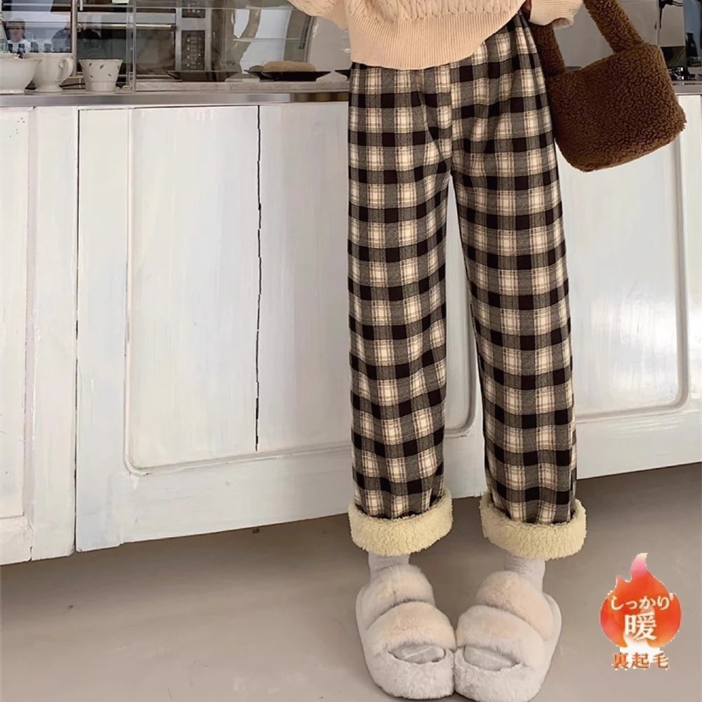 5 5poc*** 2026.01.12 カラー:チェック柄 ブラウン(裏起毛) サイズ:フリーサイズオプション : カラー:チェック柄/ブラウン(裏起毛) / サイズ:フリーサイズ
