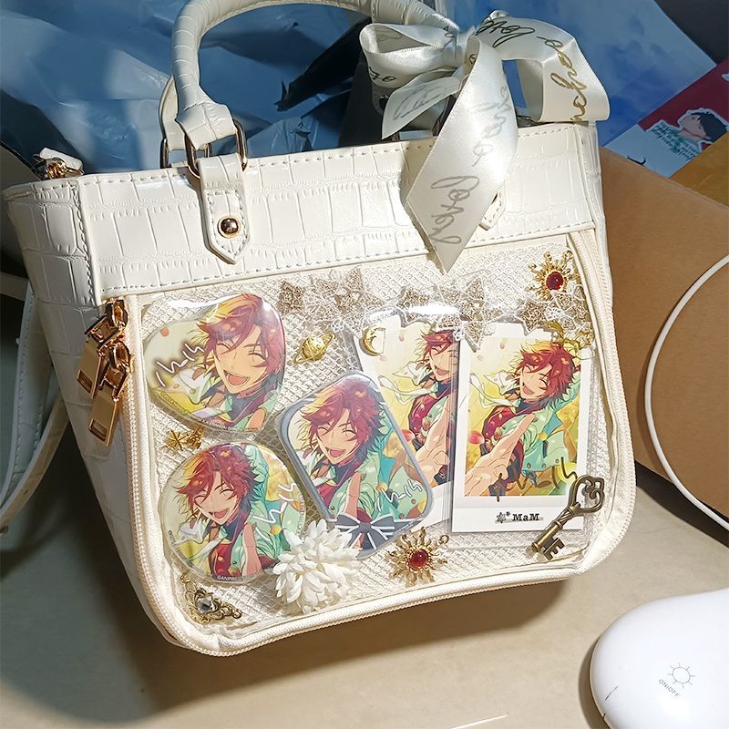 メガ割 痛バッグ 痛バ シンプル トートバッグ 痛バック 見せバッグ 透明 おたく オタクバッグ ブラック デイバック 痛バ 痛いバッグ 缶バッジ 大容量 通学 透明 アクリル収納ケース 推し活