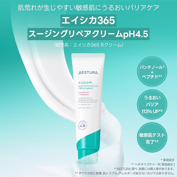 オプション : 選べるセット①:エイシカ365 スージングリペアクリームpH4.5 / 選べるセット②:エイシカ365 スージングリペアクリームpH4.5 肌タイプ : 乾燥肌 肌トーン : ブルベ
