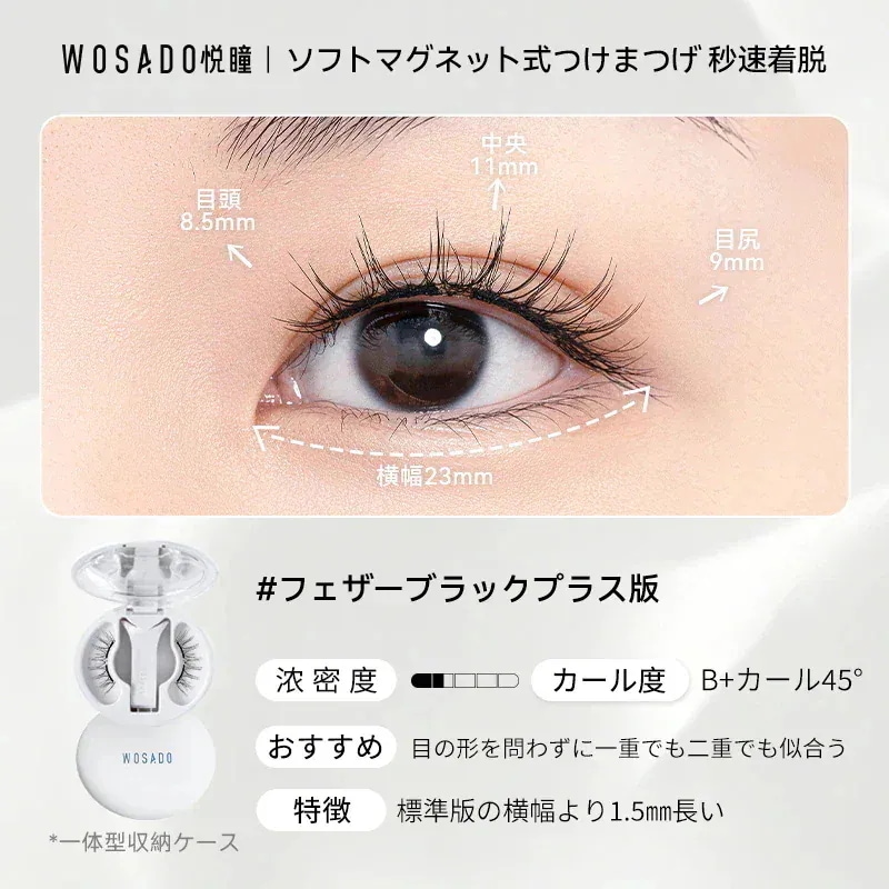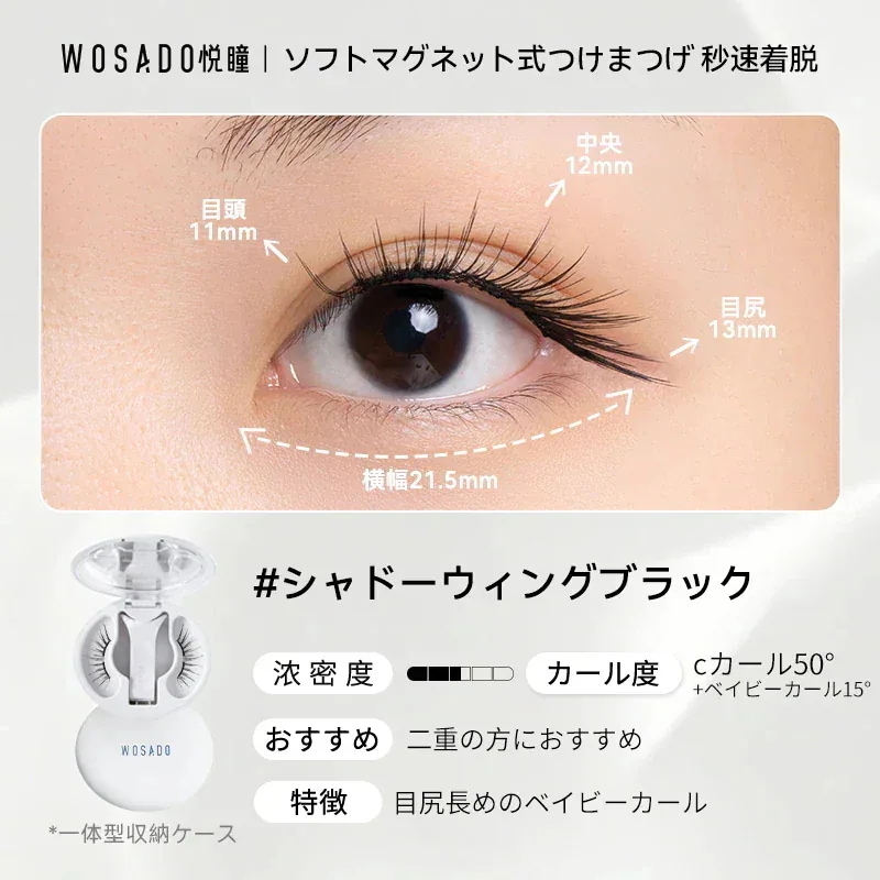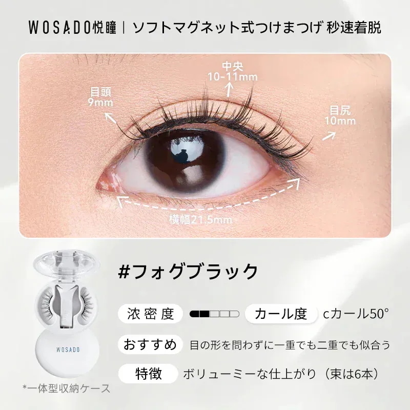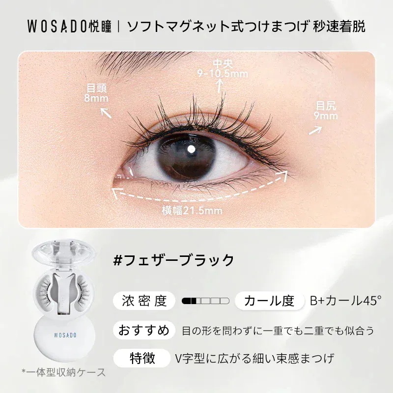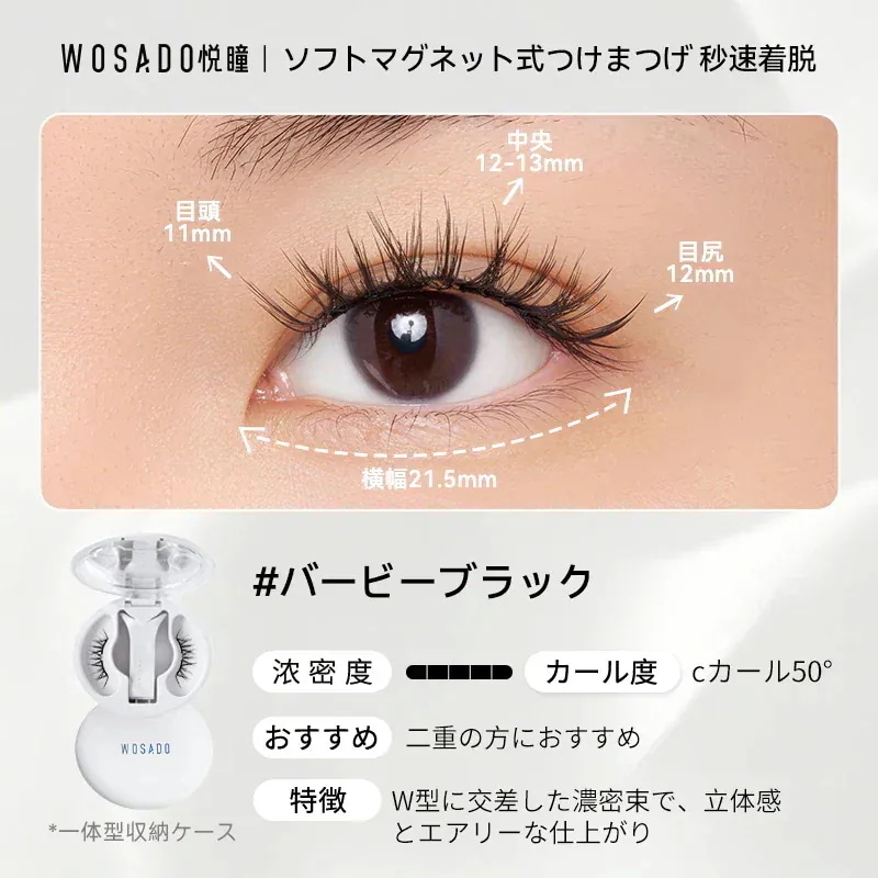朝の忙しい時間に、マスカラを塗布してピンセットでちまちまと束を作っていた過去の私がアホらしいです。wosadoさえあれば、数秒で、過去のそれ以上の仕上がりを手に入れることができます。