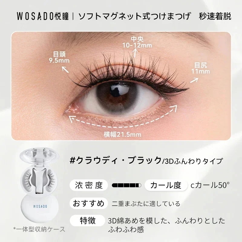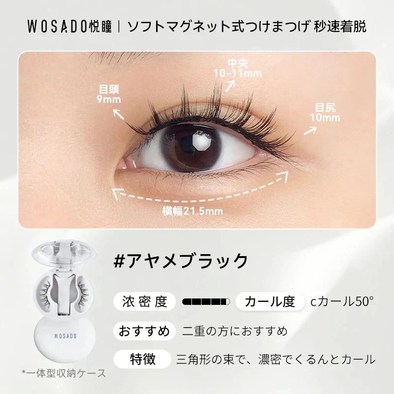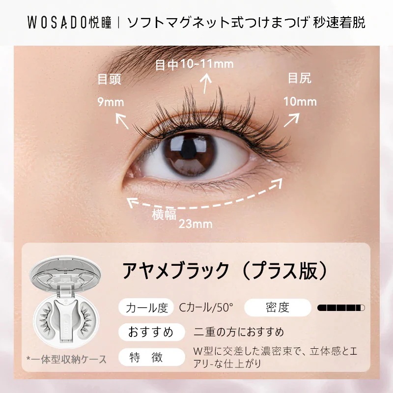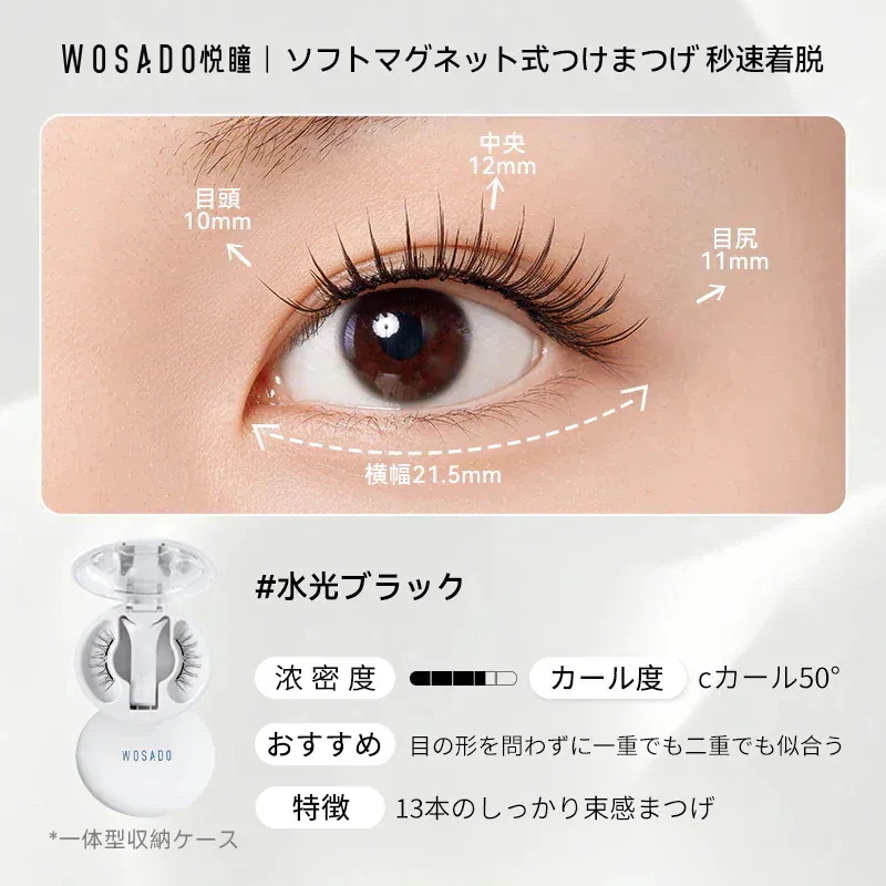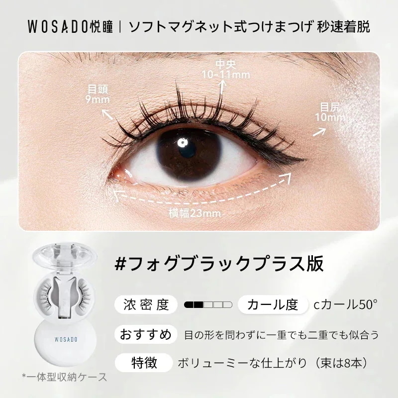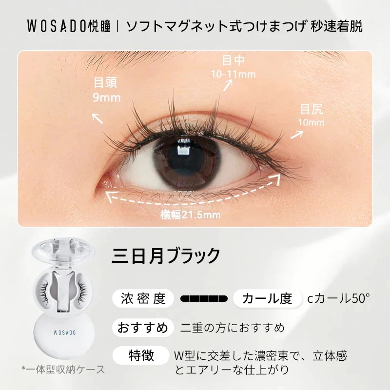 朝の忙しい時間に、マスカラを塗布してピンセットでちまちまと束を作っていた過去の私がアホらしいです。wosadoさえあれば、数秒で、過去のそれ以上の仕上がりを手に入れることができます。